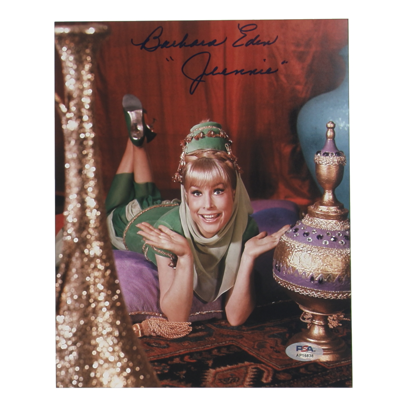 Photo measures 8" x 10" in size and has been hand-signed and inscribed by Barbara Eden.