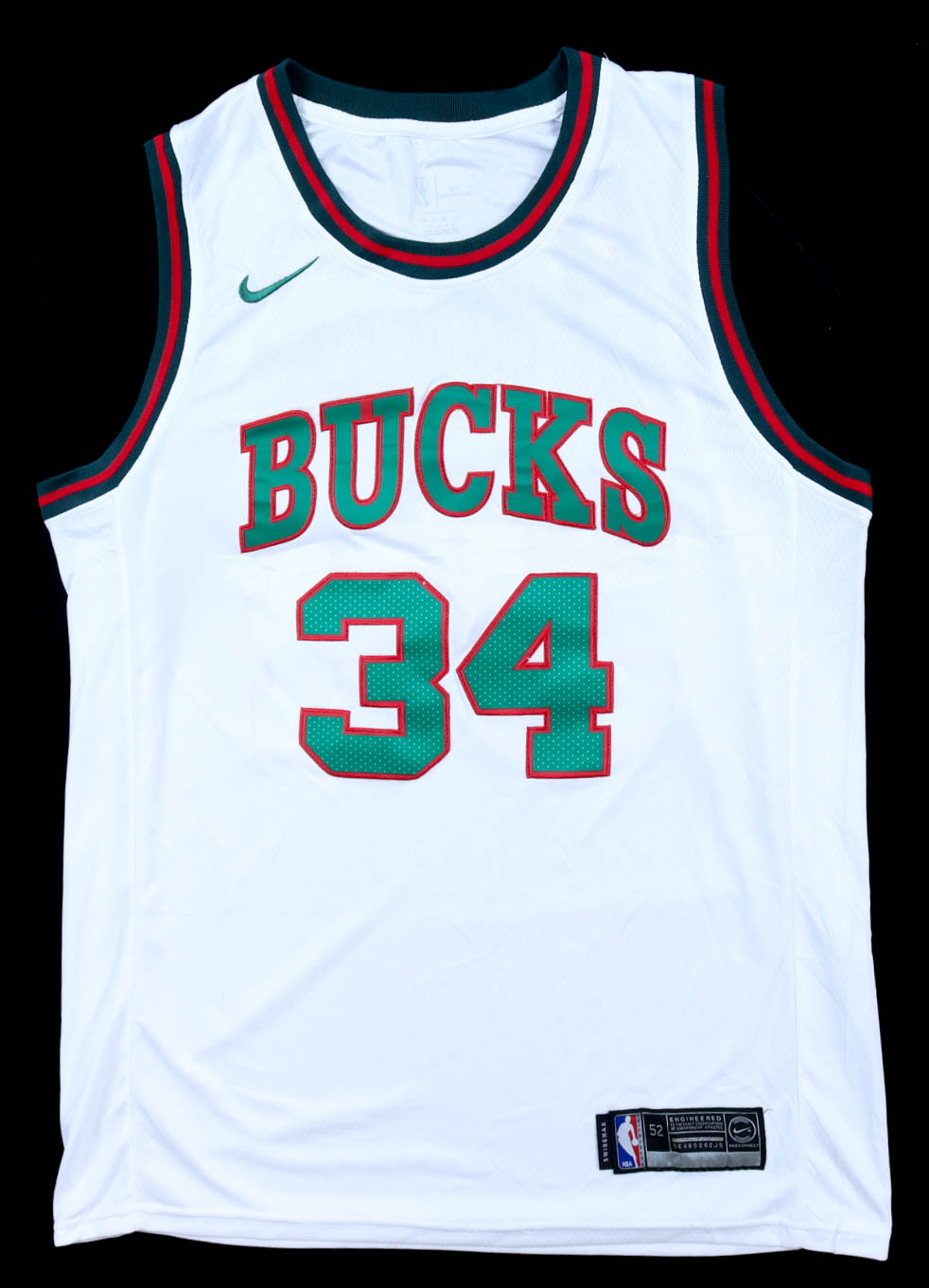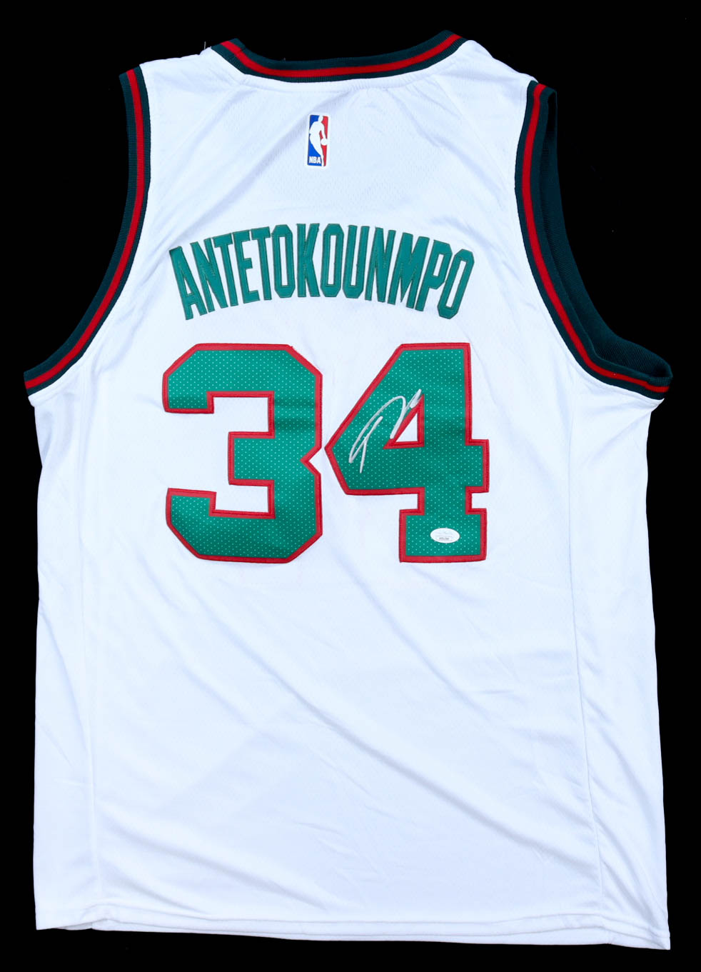 Nike authentic jersey with everything sewn on, size XL. Hand-signed by Giannis Antetokounmpo.