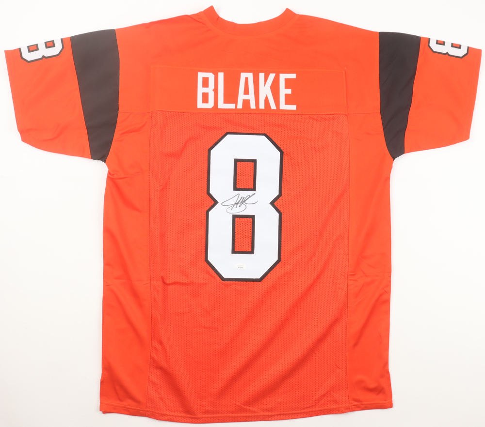 Custom jersey with everything sewn on, size XL. Hand-signed by Jeff Blake.