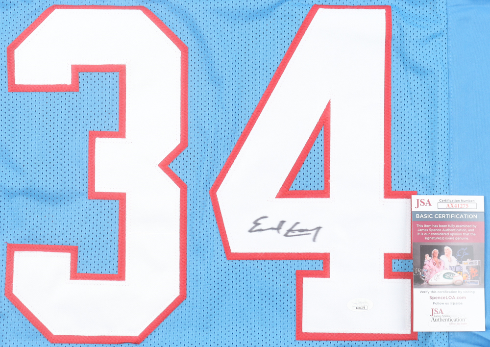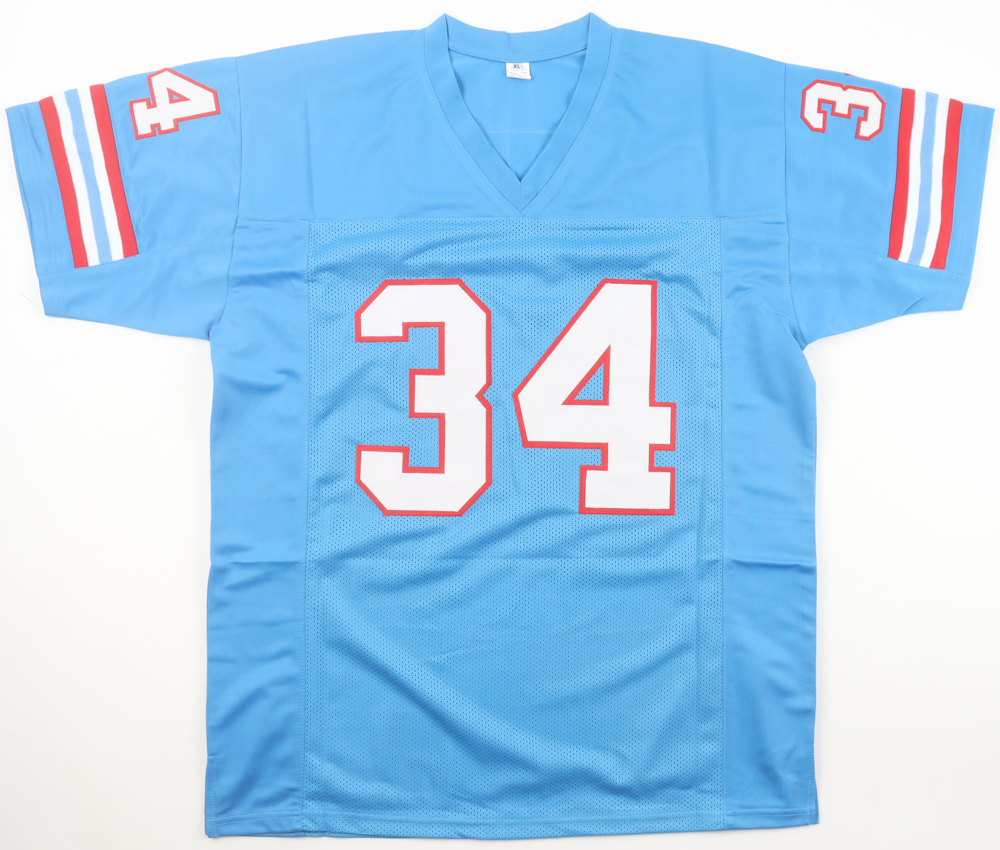 Custom jersey with everything sewn on, size XL. Hand-signed by Earl Campbell (HOF). Please note, the signature has bled.
