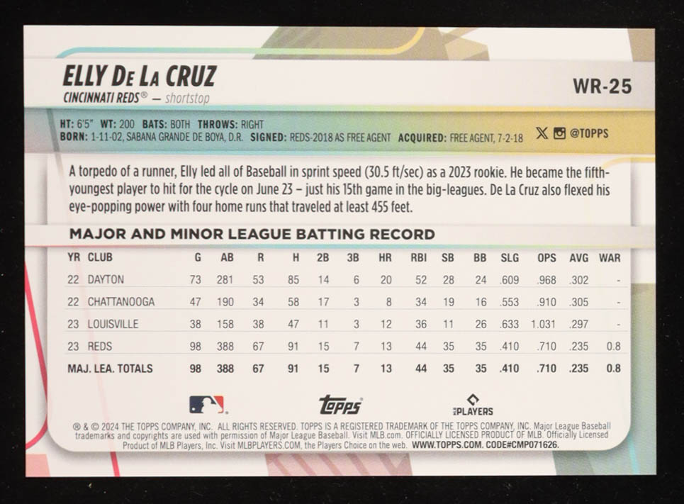 Elly De La Cruz 2024 Topps Big League Green #WR25 RC #95/99
