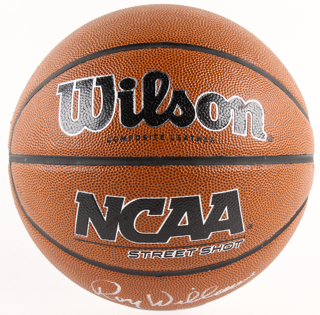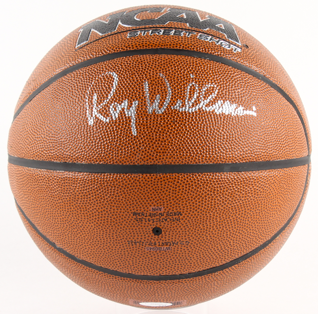 Wilson NCAA composite leather basketball. Hand-signed in silver paint pen by Roy Williams (North Carolina Tar Heels).