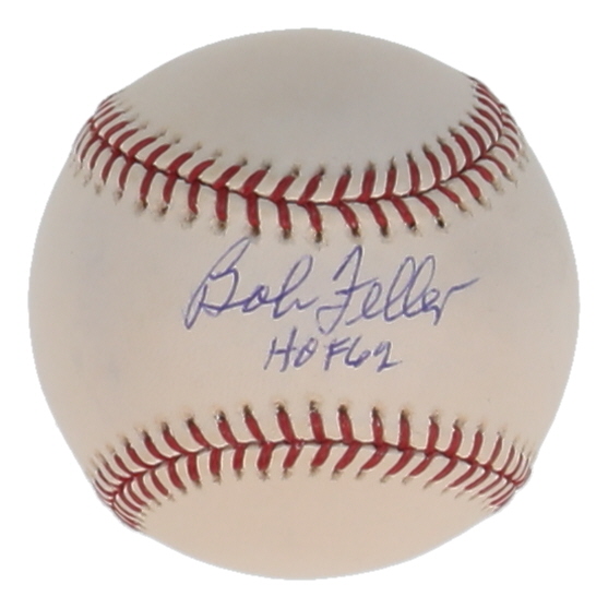 Rawlings Official Major League Baseball. Hand-signed and inscribed by Bob Feller (D. 2010, Cleveland Indians, HOF).
