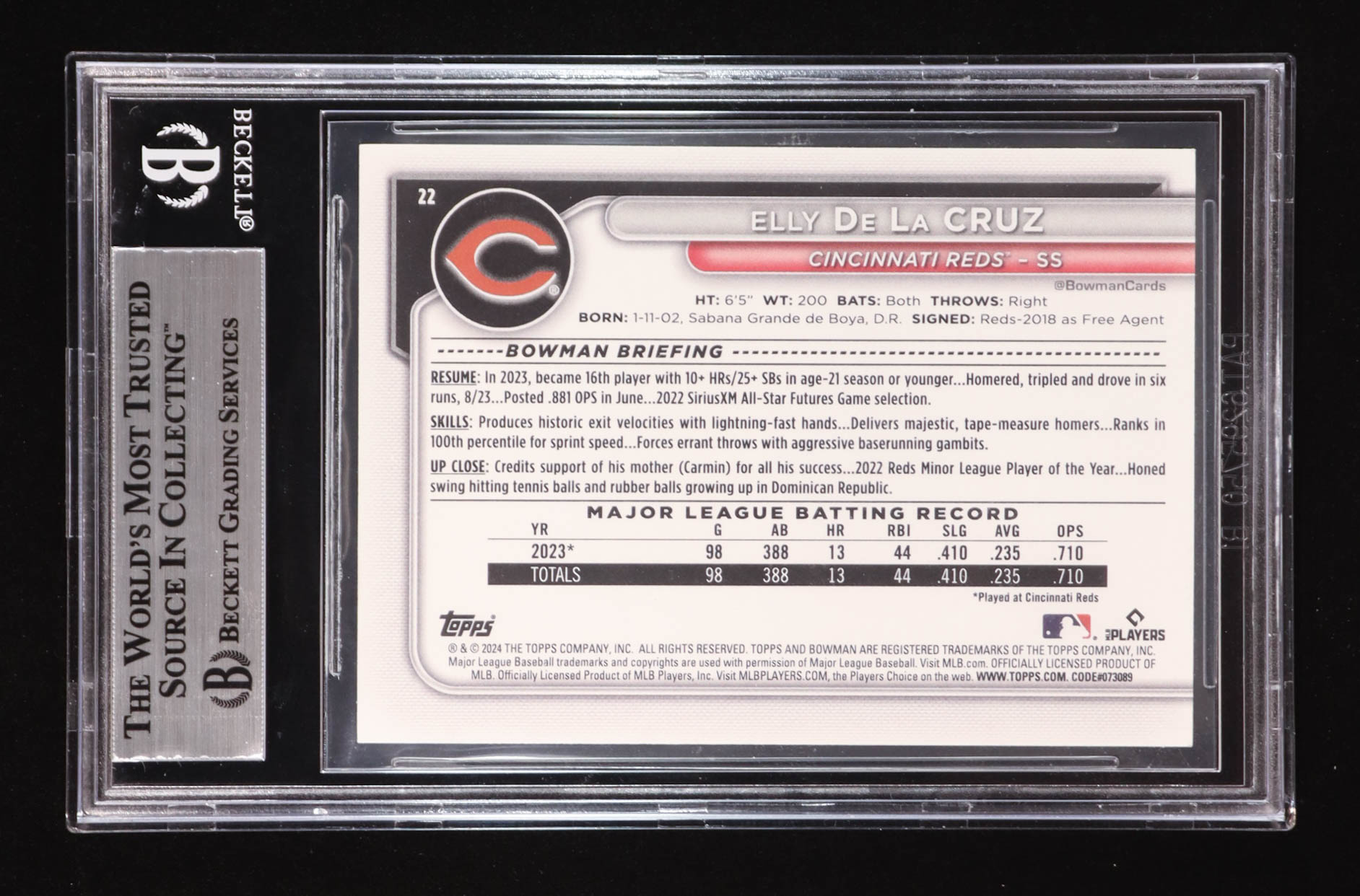 Elly De La Cruz Signed 2024 Bowman #22 RC (BGS)