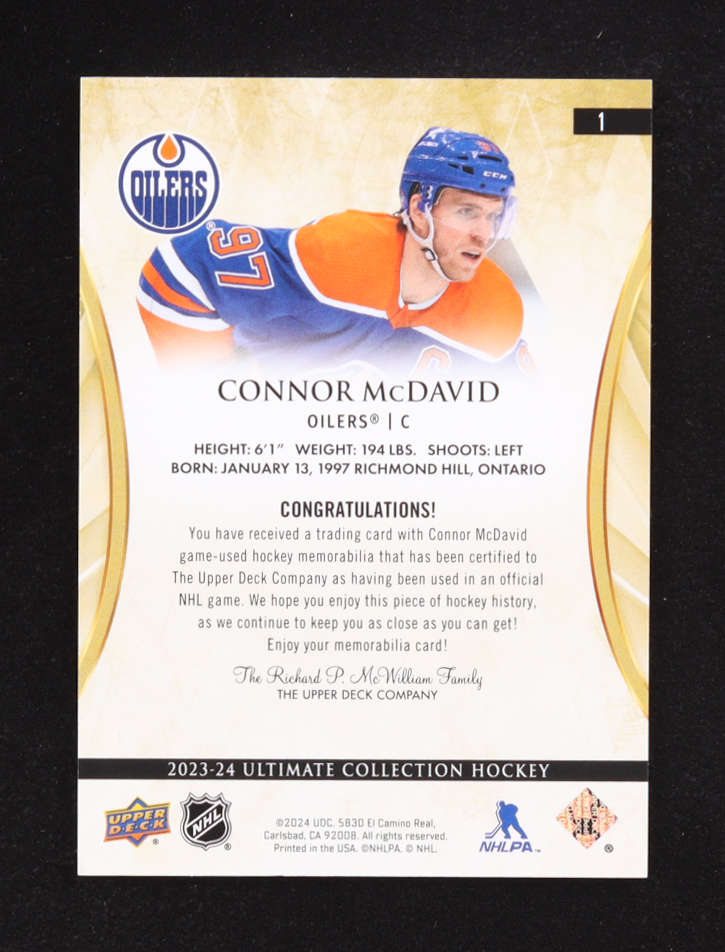 Connor McDavid 2023-24 Ultimate Collection Jumbo Jerseys #1 #092/149