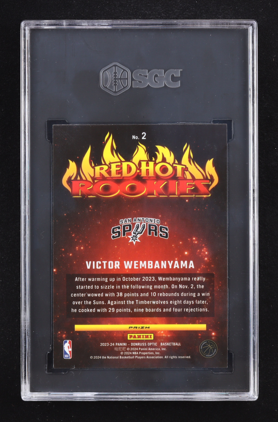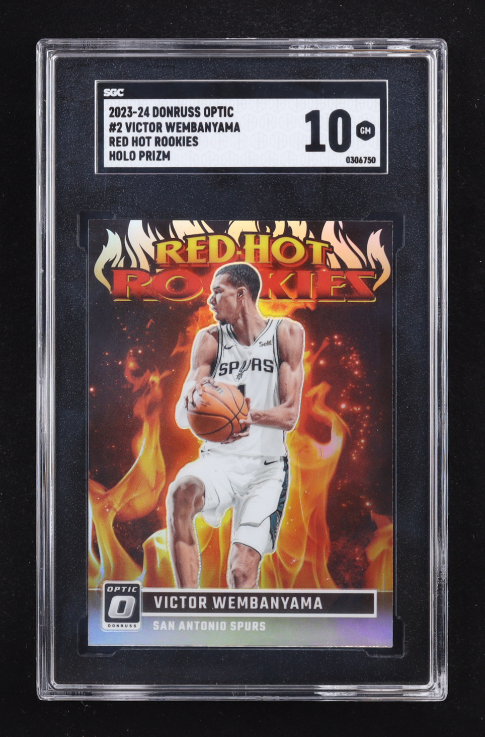 Victor Wembanyama 2023-24 Donruss Optic Red Hot Rookies Holo #2 RC (SGC 10)