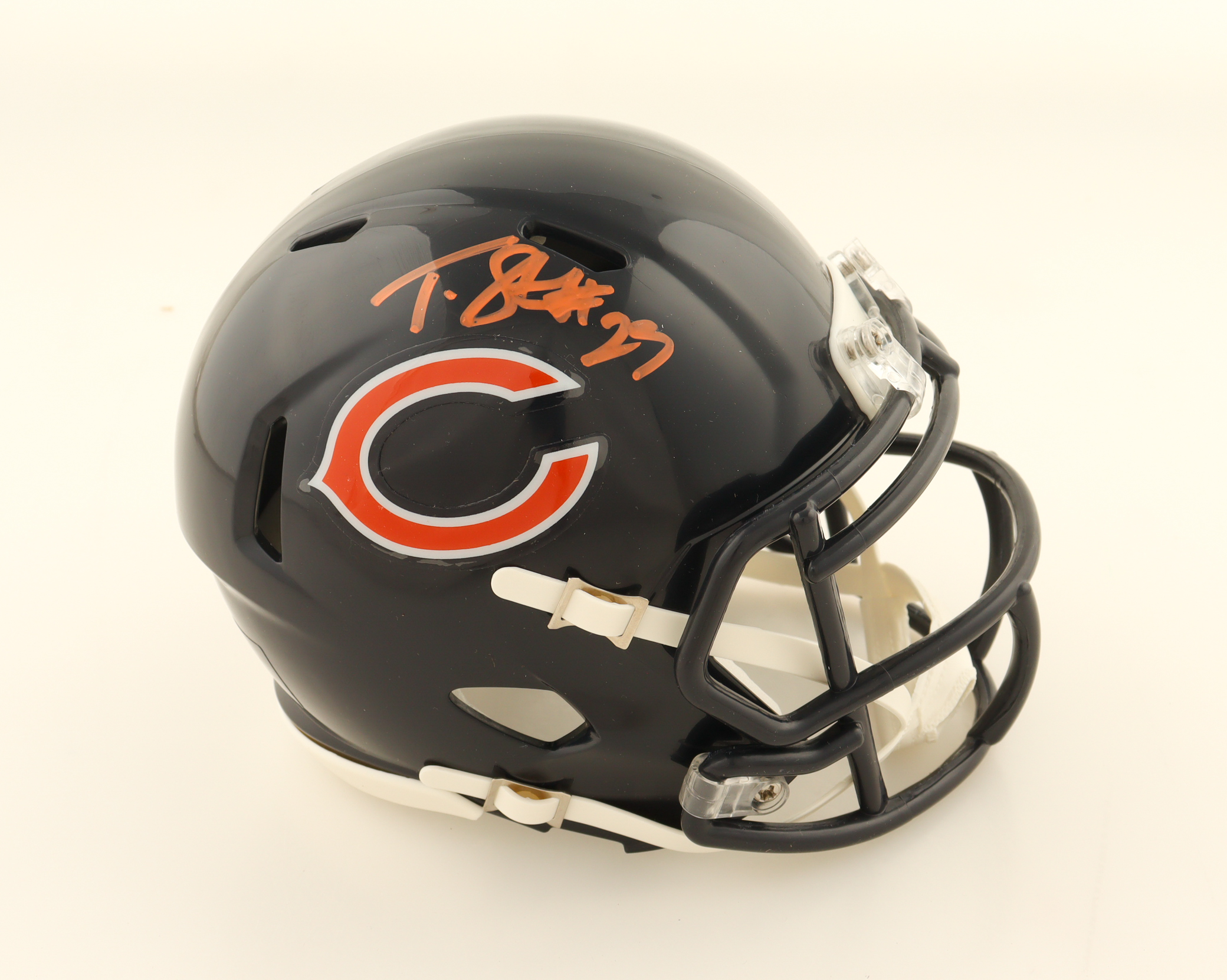 Riddell Chicago Bears speed mini helmet has been hand-signed by Tyrique Stevenson. See photos for more details on condition of item.