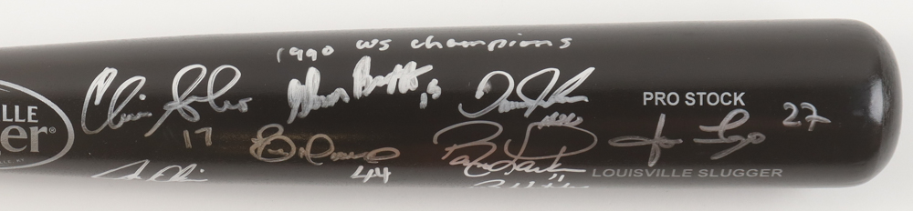 1990 World Series Champions Cincinnati Reds Louisville Slugger Pro Stock Baseball Bat. Hand-signed by (8) with Barry Larkin, Eric Davis, Jose Rijo, Chris Sabo, Billy Hatcher, Danny Jackson, Glenn Braggs and Joe Oliver.