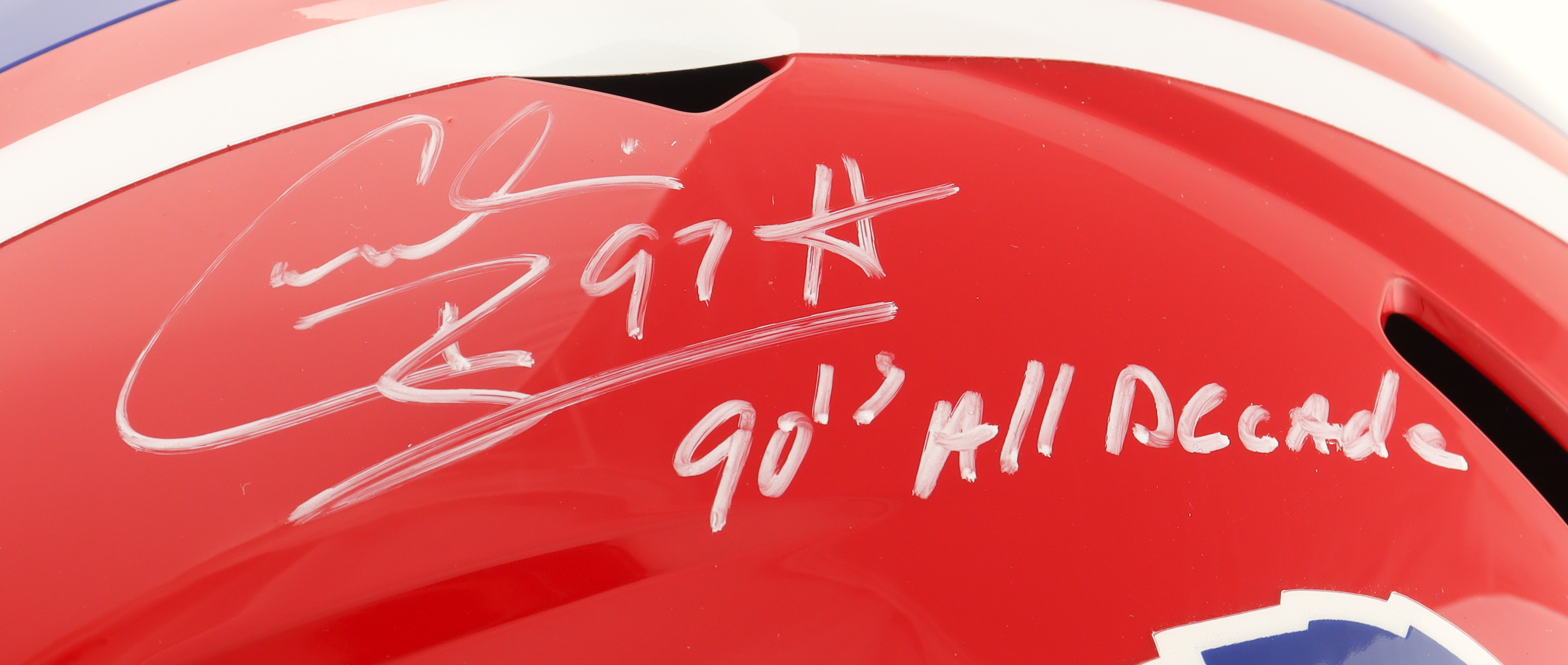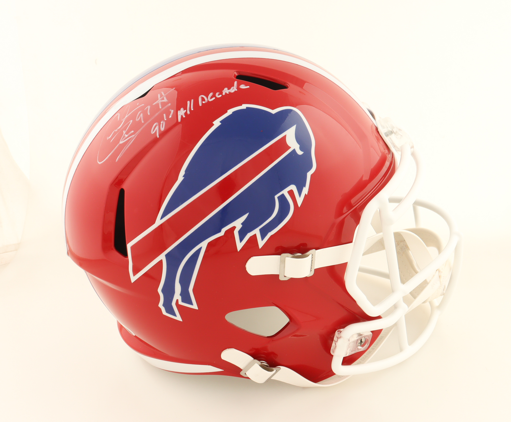 Cornelius Bennett Signed Bills Full-Size Speed Helmet Inscribed "90s All Decade" (JSA)