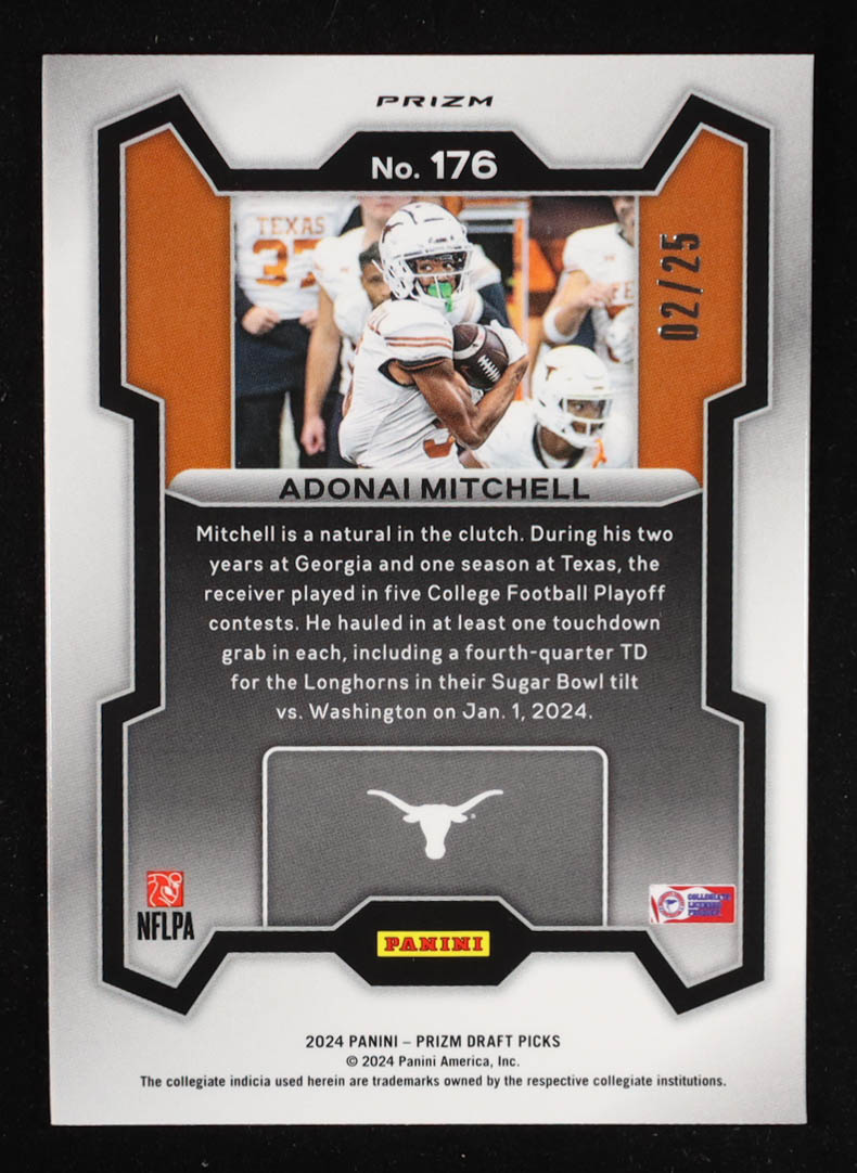 Adonai Mitchell 2024 Panini Prizm Draft Picks Prizms Mojo #176 RC #2/25