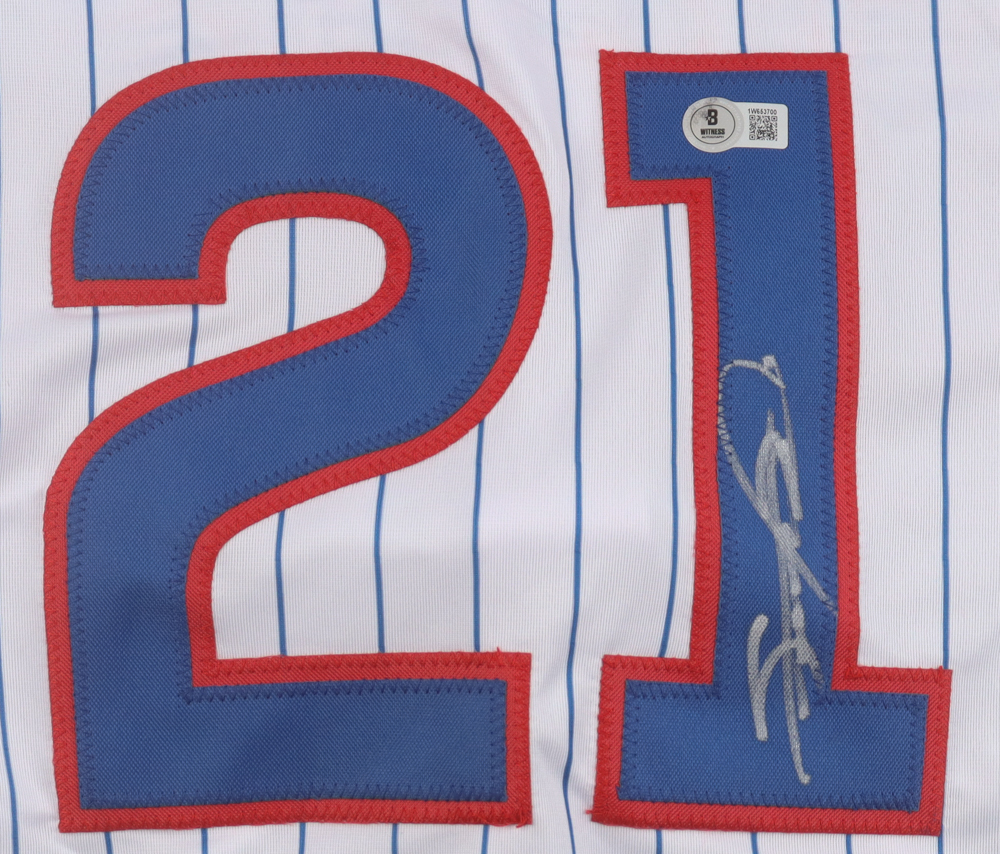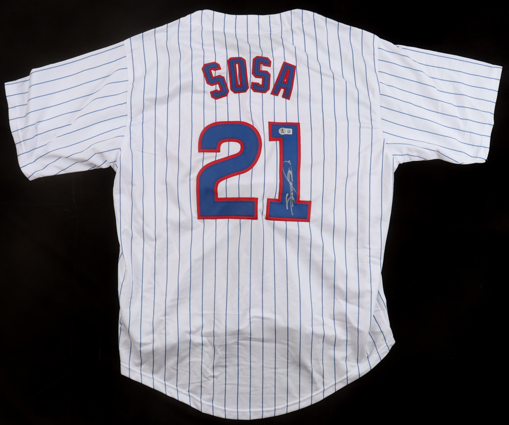 Custom jersey. Everything is sewn on, size XL. Hand-signed by Sammy Sosa.