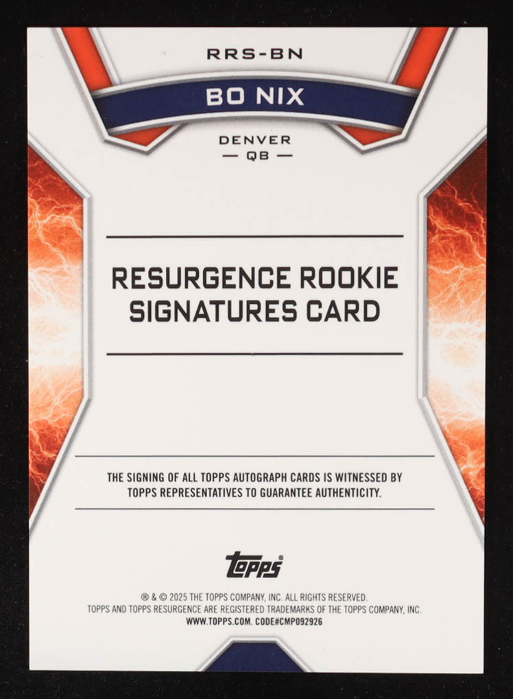 Bo Nix 2024 Topps Resurgence Resurgence Rookie Signatures #RRSBN RC