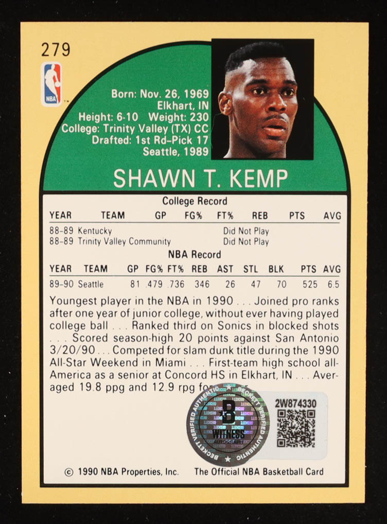 Shawn Kemp Signed 1990-91 Hoops #279 RC (Beckett)
