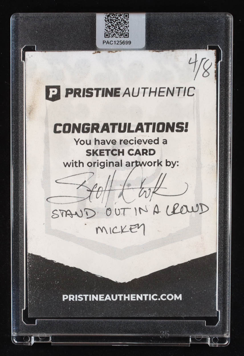 This original sketch card includes original art by award winning Walt Disney artist, Scott Cook. The card is hand-signed along with a character name inscription on the back by the artist.