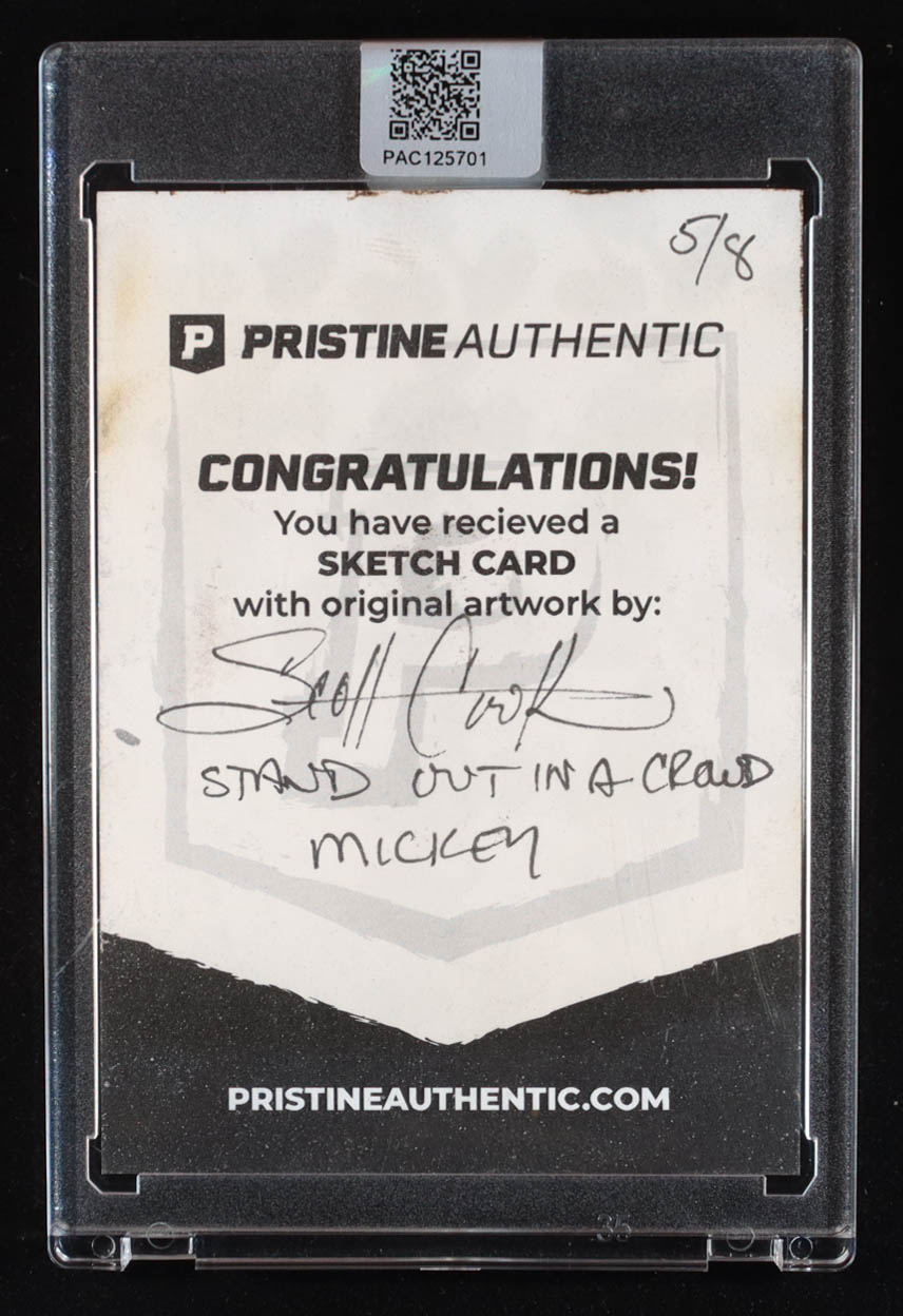 This original sketch card includes original art by award winning Walt Disney artist, Scott Cook. The card is hand-signed along with a character name inscription on the back by the artist.