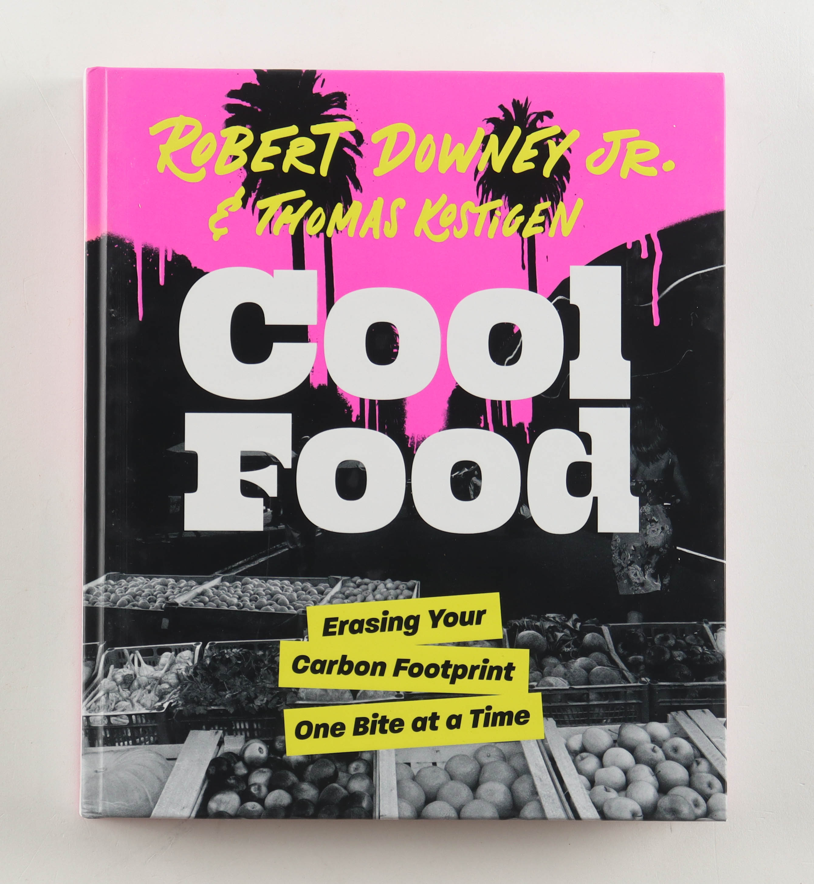 "Cool Food" hardcover book. Hand-signed on the title page by Robert Downey Jr. and Thomas Kostigen.