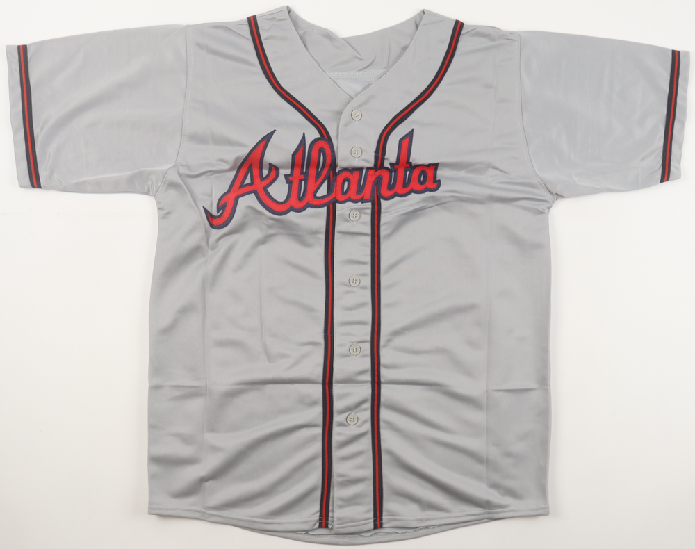 Custom jersey with everything sewn on, size XL. Hand-signed by Ronald Acuna Jr..