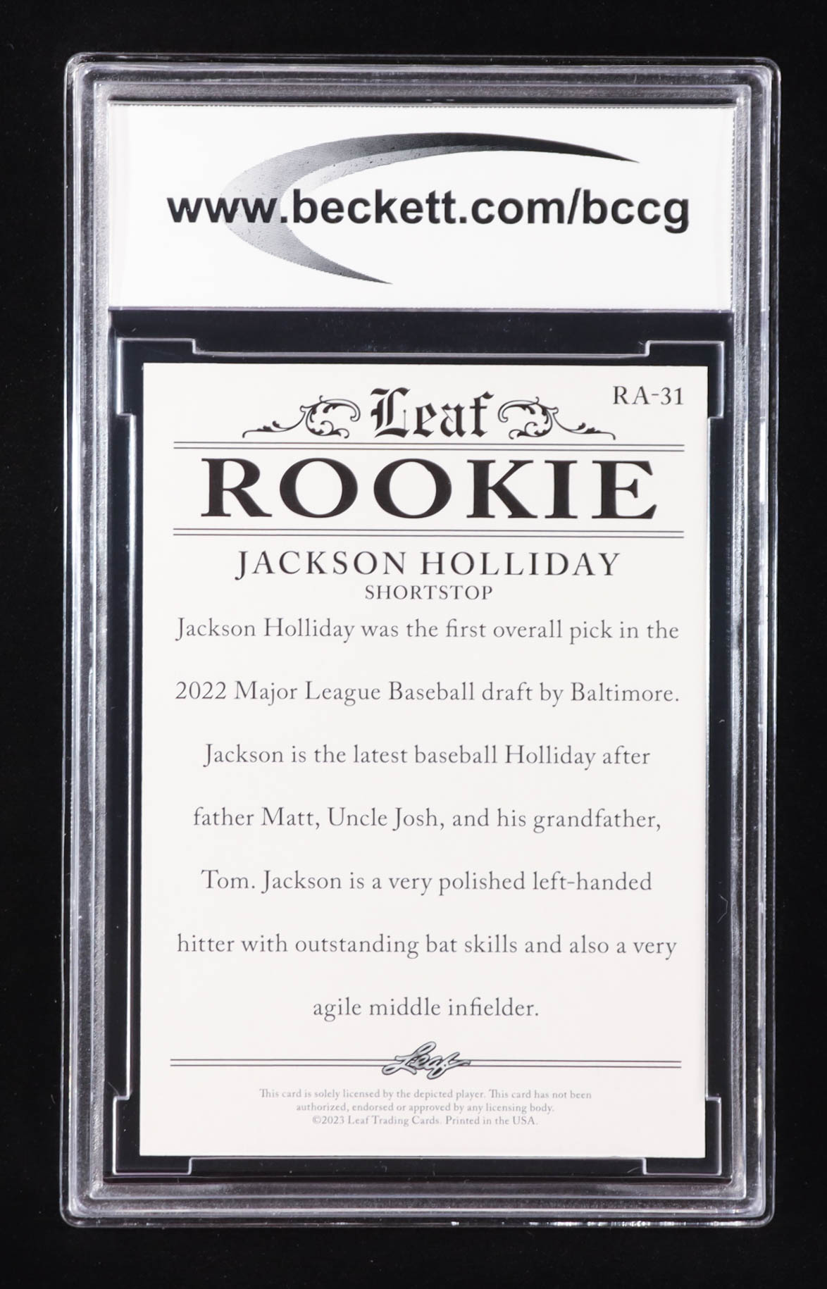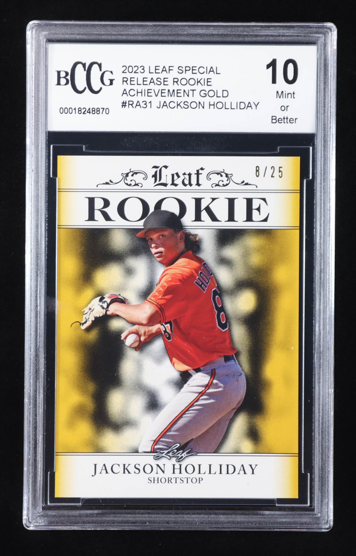 Jackson Holliday 2023 Leaf Special Release Rookie Achievement Gold #RA31 RC #8/25 (BCCG 10)