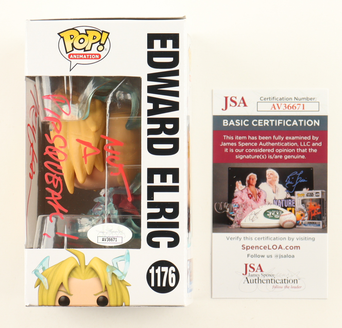 Vic Mignogna Signed "Fullmetal Alchemist: Brotherhood" #1176 Edward Elric Funko Pop! Vinyl Figure Inscribed "Not A Pipsqueak!" (JSA)