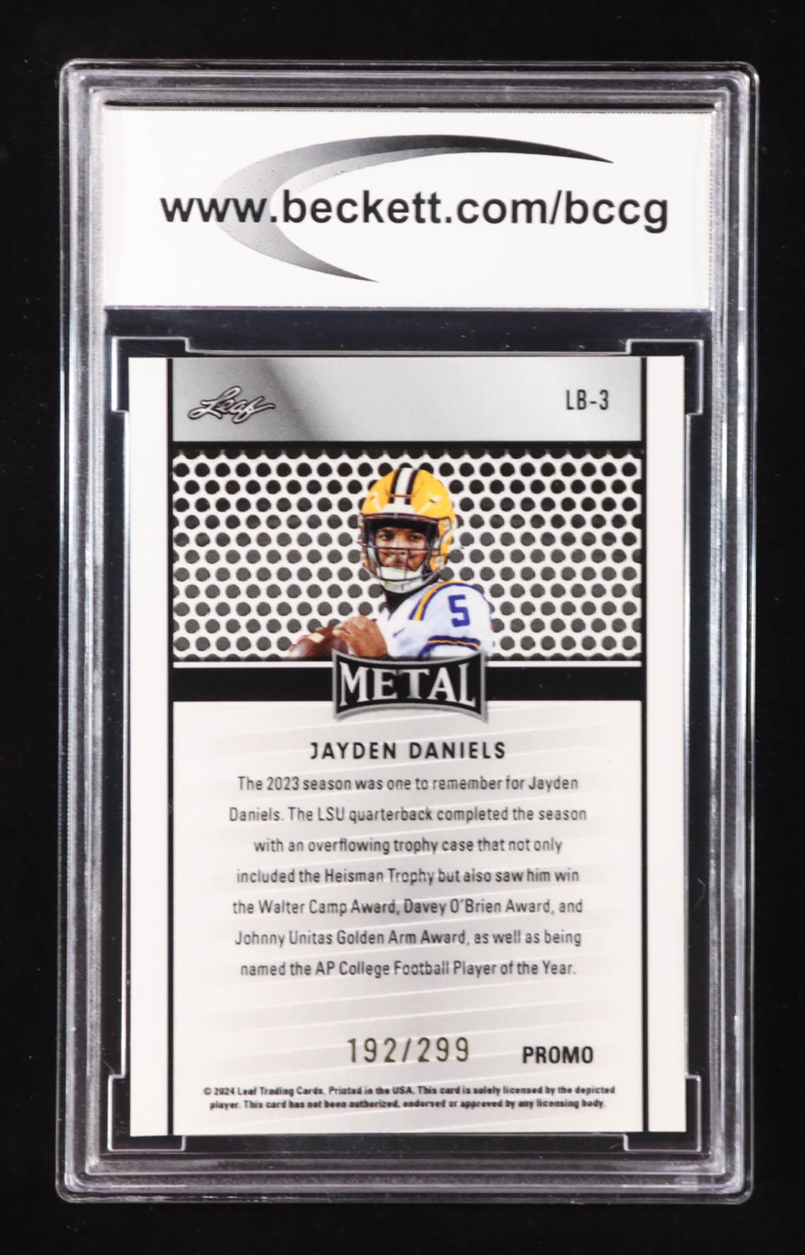 Jayden Daniels 2024 Leaf Collective Promo Leaf Shimmer Orange #LB3 RC #192/299 (BCCG 10)