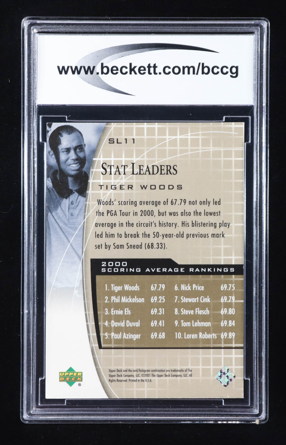 Tiger Woods 2001 Upper Deck Stat Leaders #SL11 RC (BCCG 9)