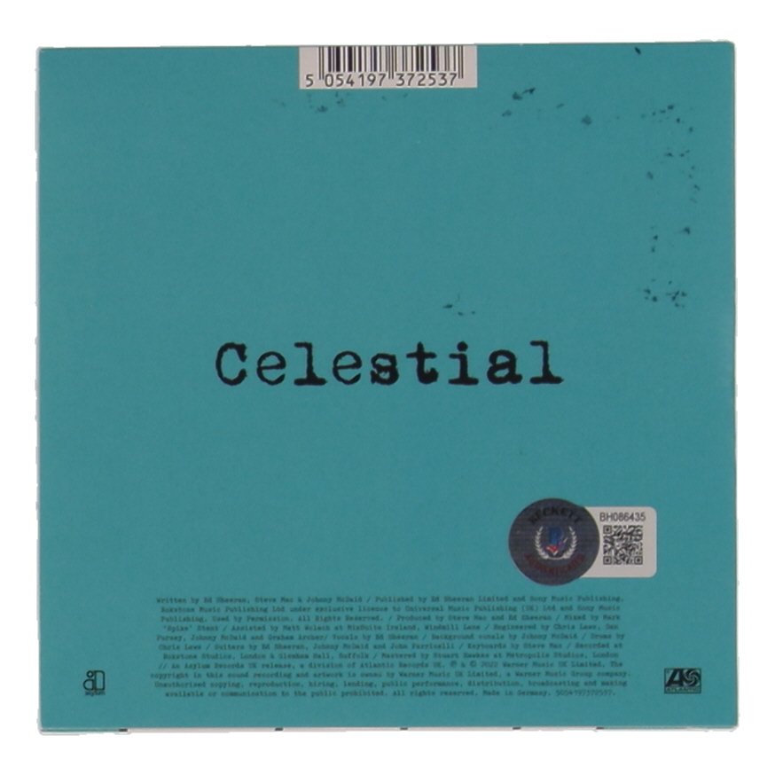 "Celestial" CD album with CD has been hand-signed on the cover by Ed Sheeran. Please note, there is smudging on the autograph and staining on the back.