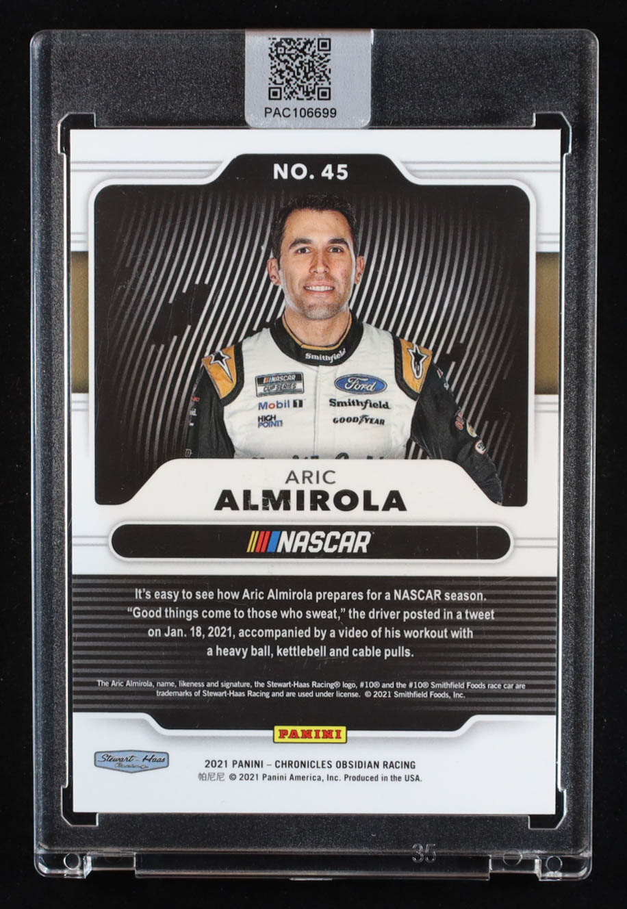 Aric Almirola Signed 2021 Panini Chronicles Obsidian #45 (PA)
