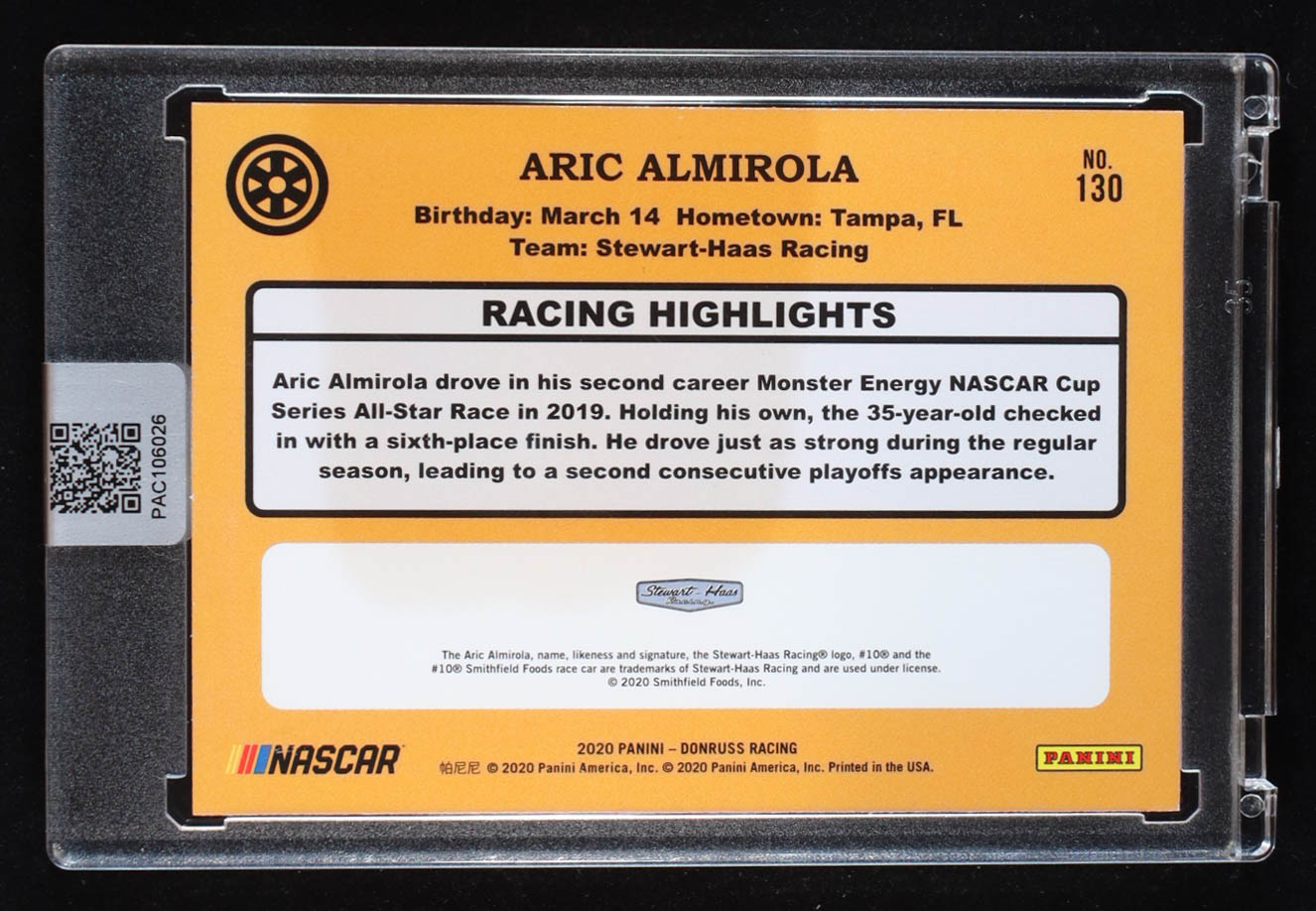 Aric Almirola Signed 2020 Donruss #130 RETRO (PA)