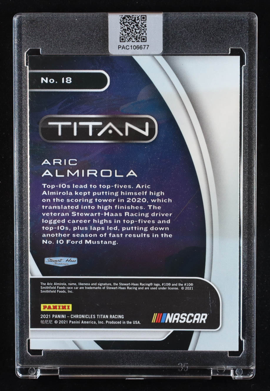 Aric Almirola Signed 2021 Panini Chronicles Titan #18 (PA)