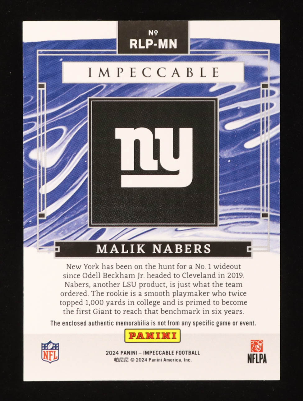 Malik Nabers 2024 Panini Impeccable RC Logo Patches #5 RC #10/49