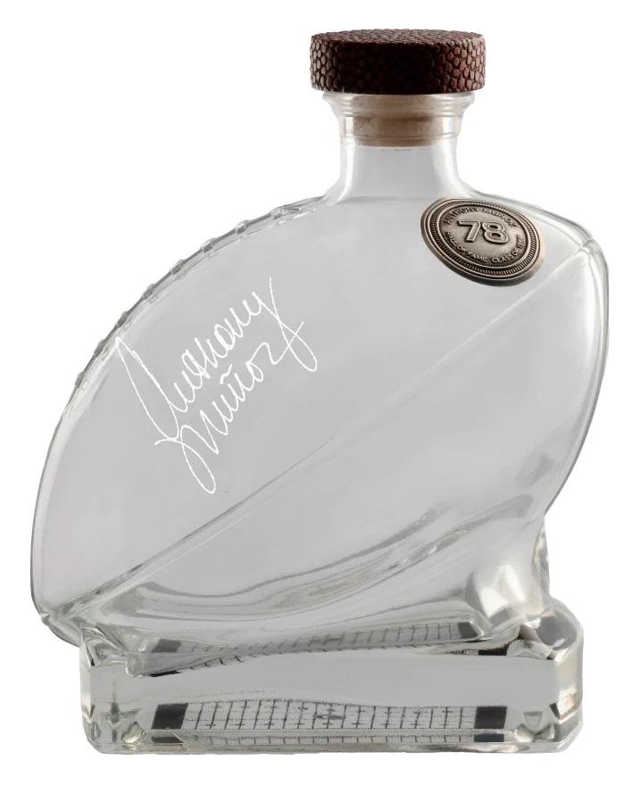 Custom Glass Cooperstown Canton Distillery 750ML Decanter commemorates Anthony Munoz (Cincinnati Bengals, HOF). Please note, the signature is a facsimile and the glass features the Pro Football Hall of Fame logo.