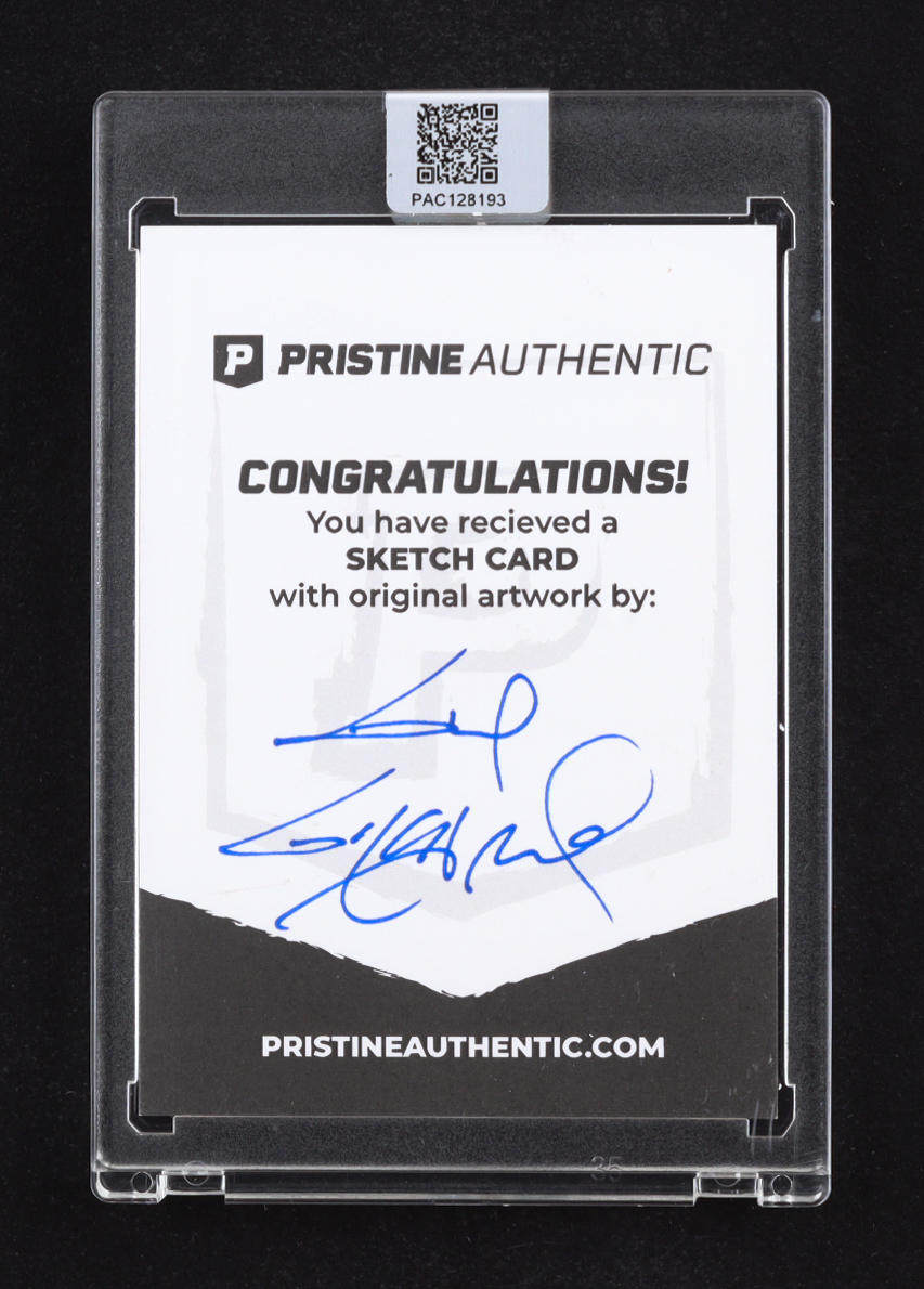 This sketch card includes original art by world-renowned illustrator, Guy Gilchrist.