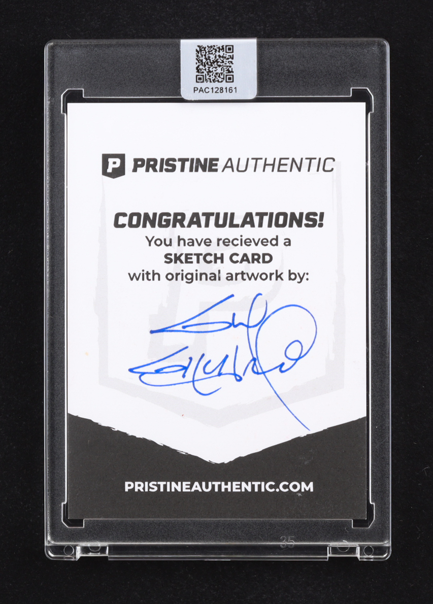 This sketch card includes original art by world-renowned illustrator, Guy Gilchrist.