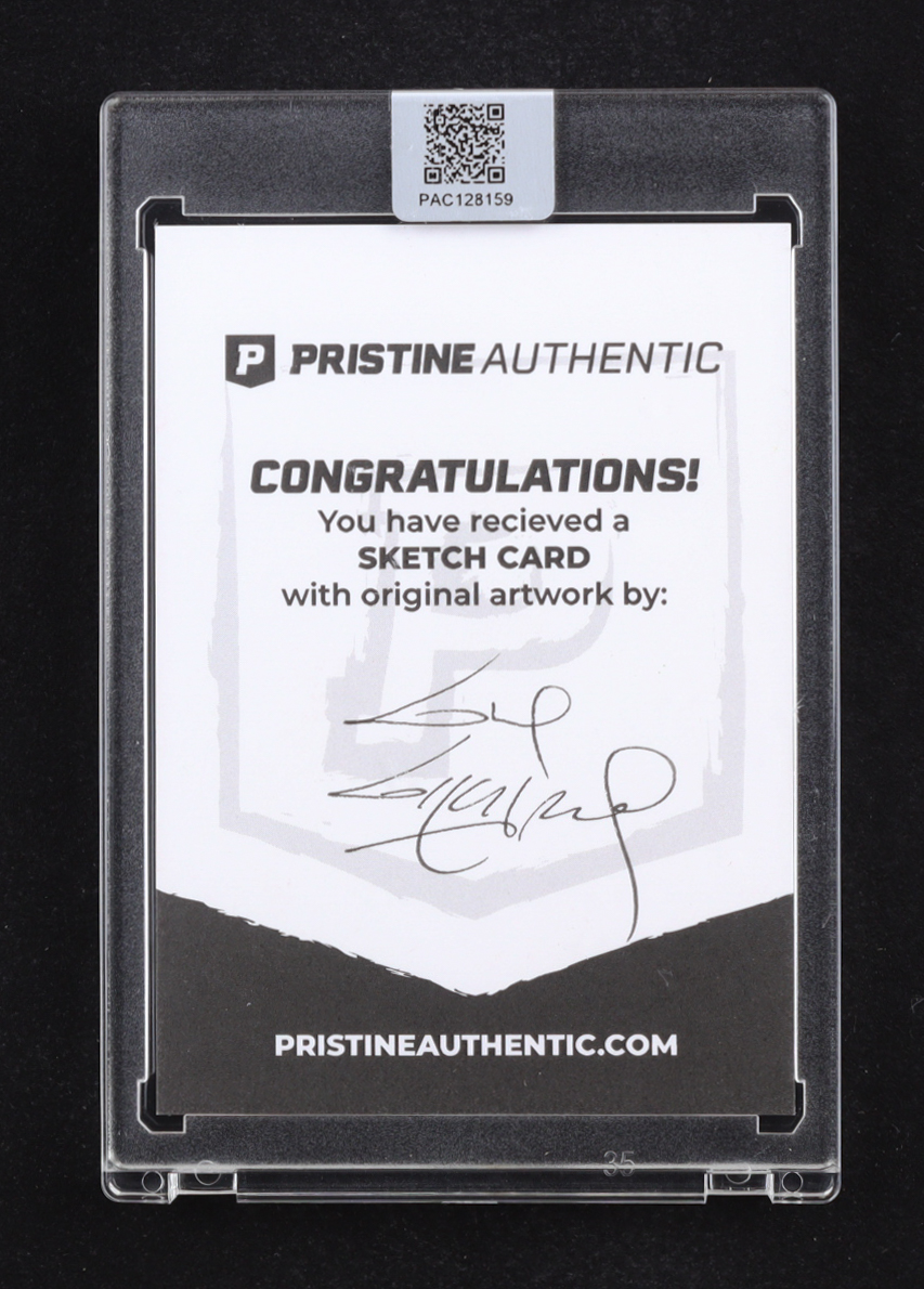 This sketch card includes original art by world-renowned illustrator, Guy Gilchrist.