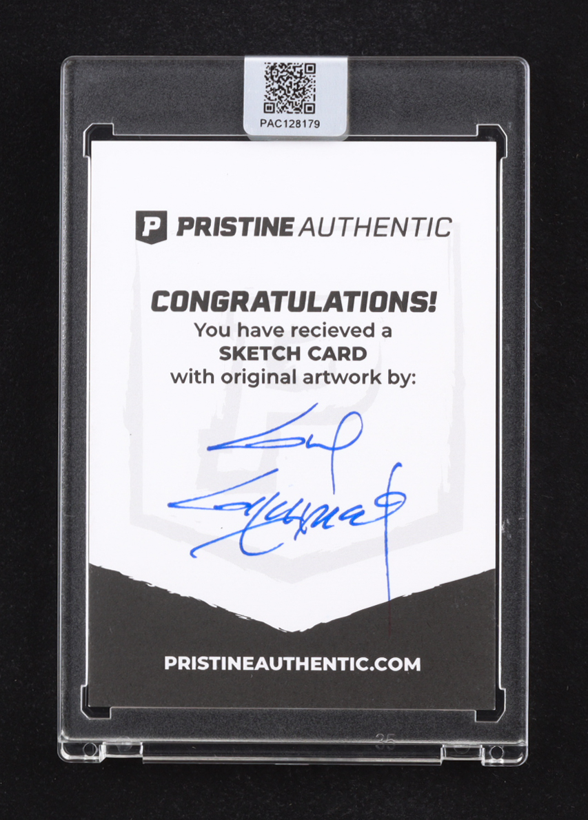 This sketch card includes original art by world-renowned illustrator, Guy Gilchrist.