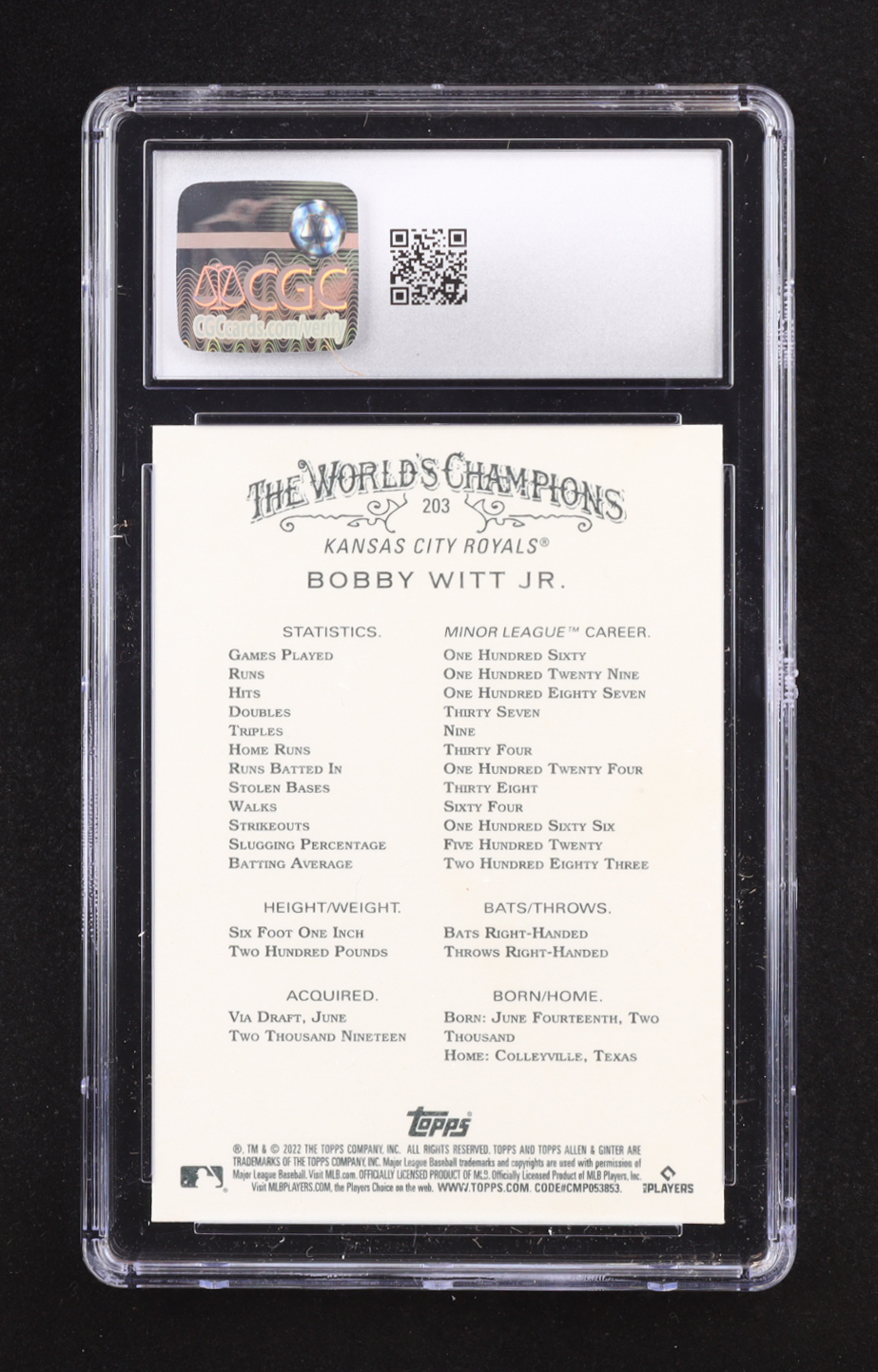 Bobby Witt Jr. 2022 Topps Allen & Ginter #203 RC (CGC 10)