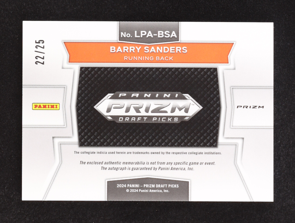 Barry Sanders 2024 Panini Prizm Draft Picks Legends Patch Autographs Tie-Dye #3 #22/25
