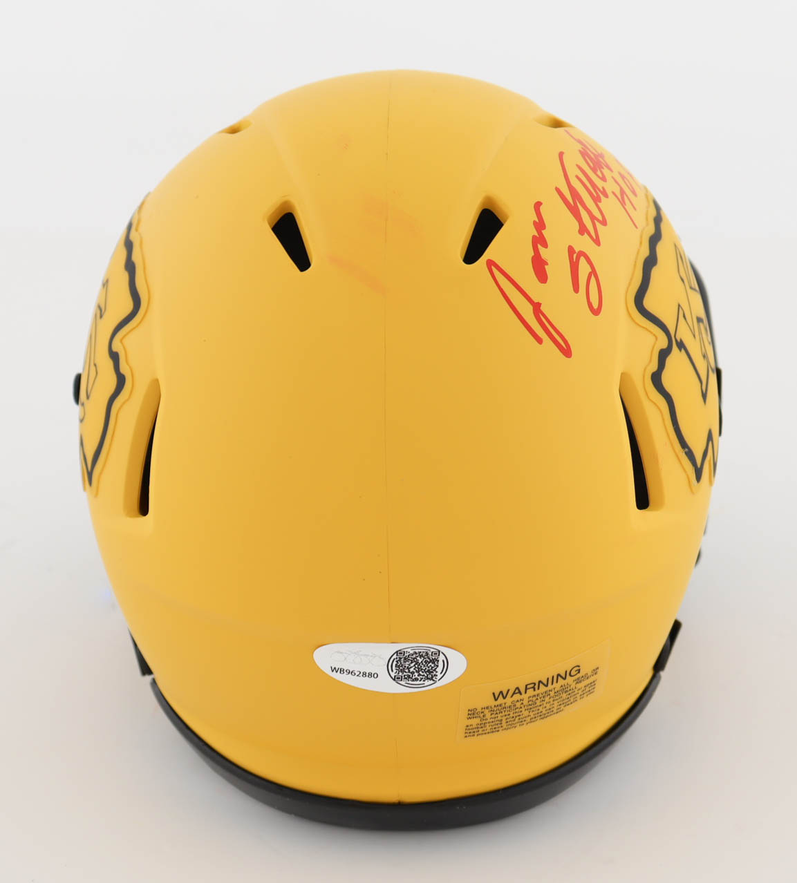 Riddell Kansas City Chiefs Rave Alternate Speed mini helmet. Hand-signed and inscribed by Jan Stenerud (HOF). Please note there is a smudge on the top of the helmet.