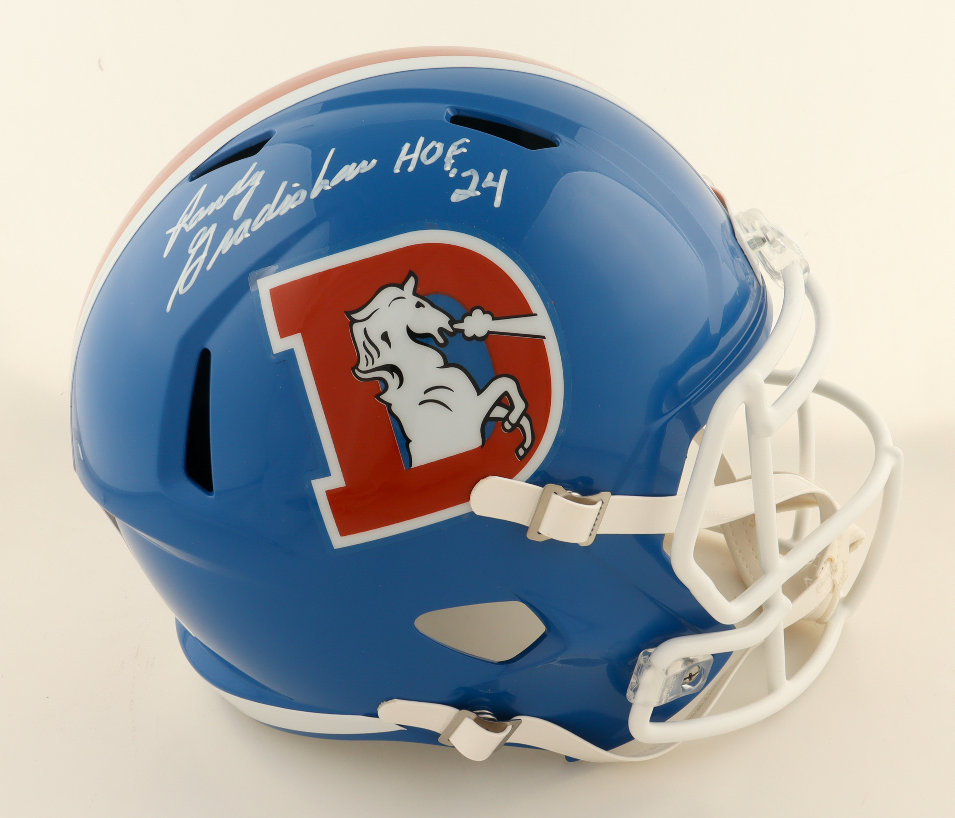 Riddell Denver Broncos Full-Size Replica Throwback Alternate Speed helmet. Hand-signed and inscribed by Randy Gradishar (HOF).