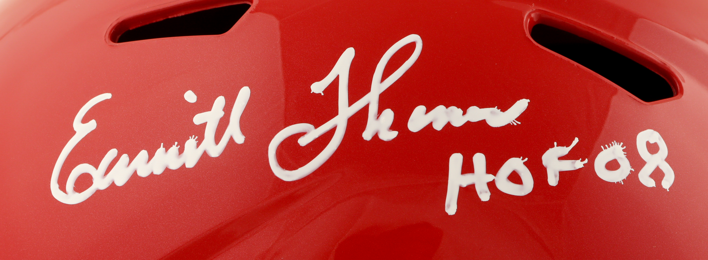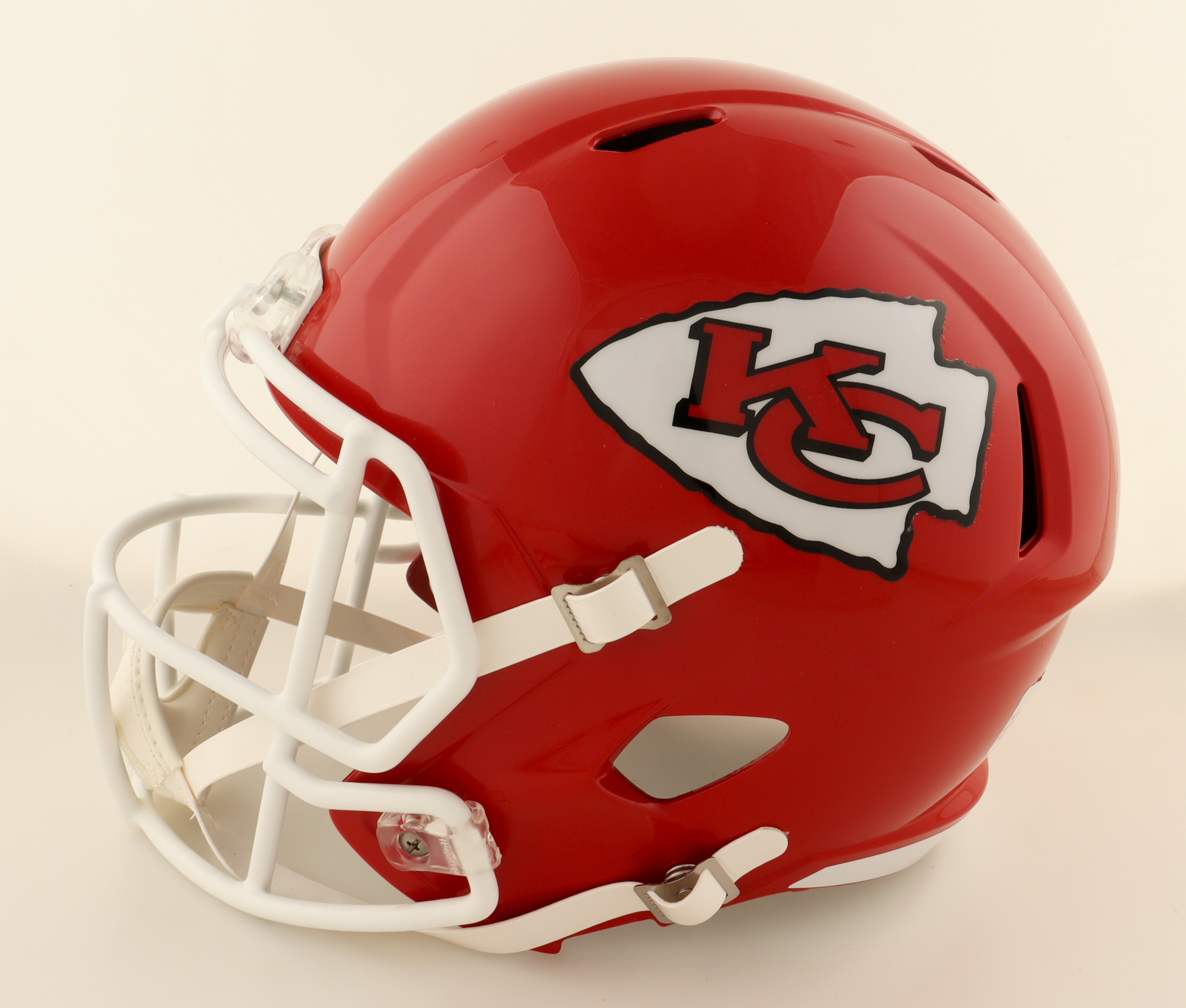 Riddell Kansas City Chiefs full-size speed replica helmet has been hand-signed and inscribed by Emmitt Thomas (HOF). Please note, signature has been smudged. See photos for more details.