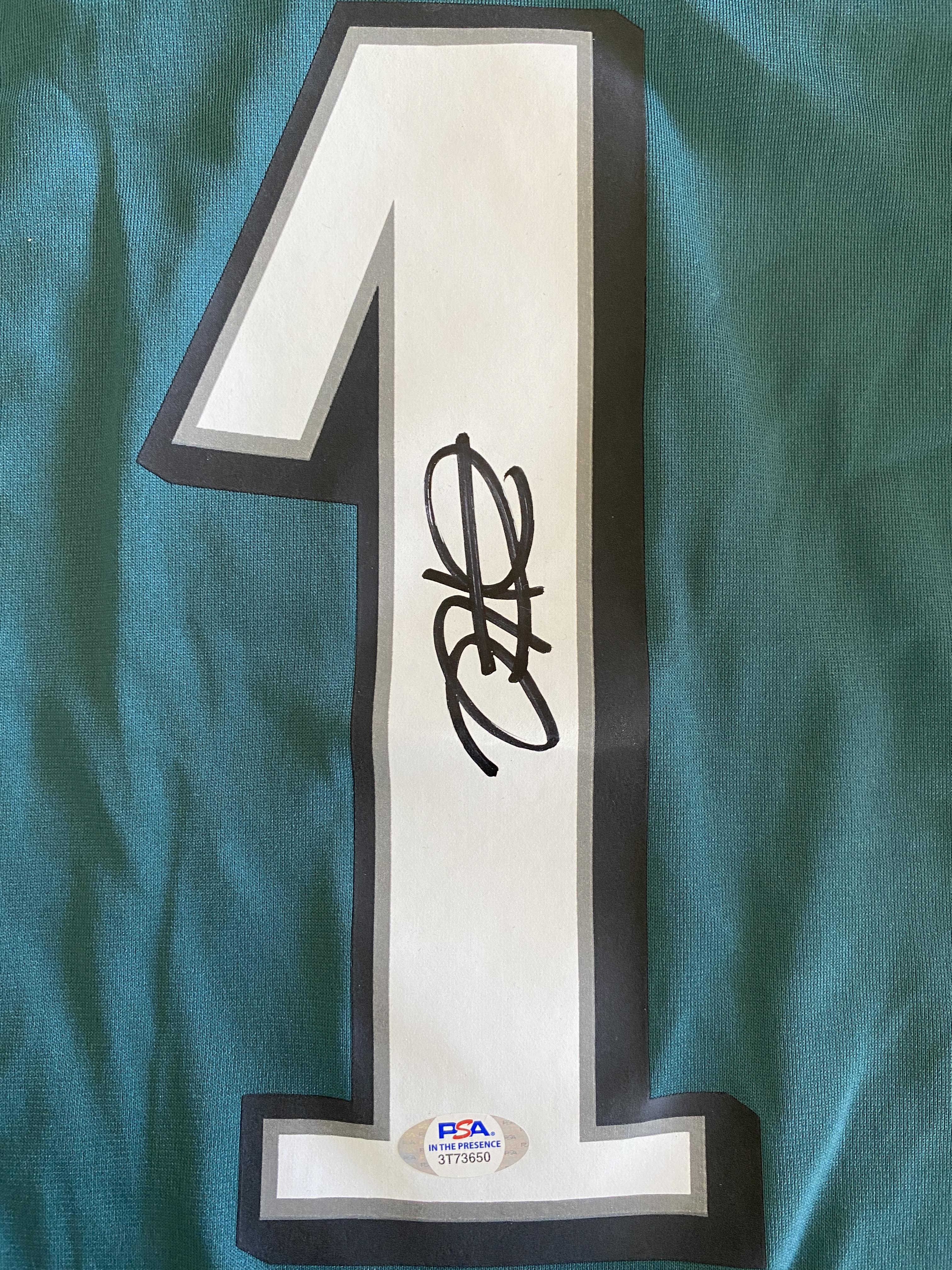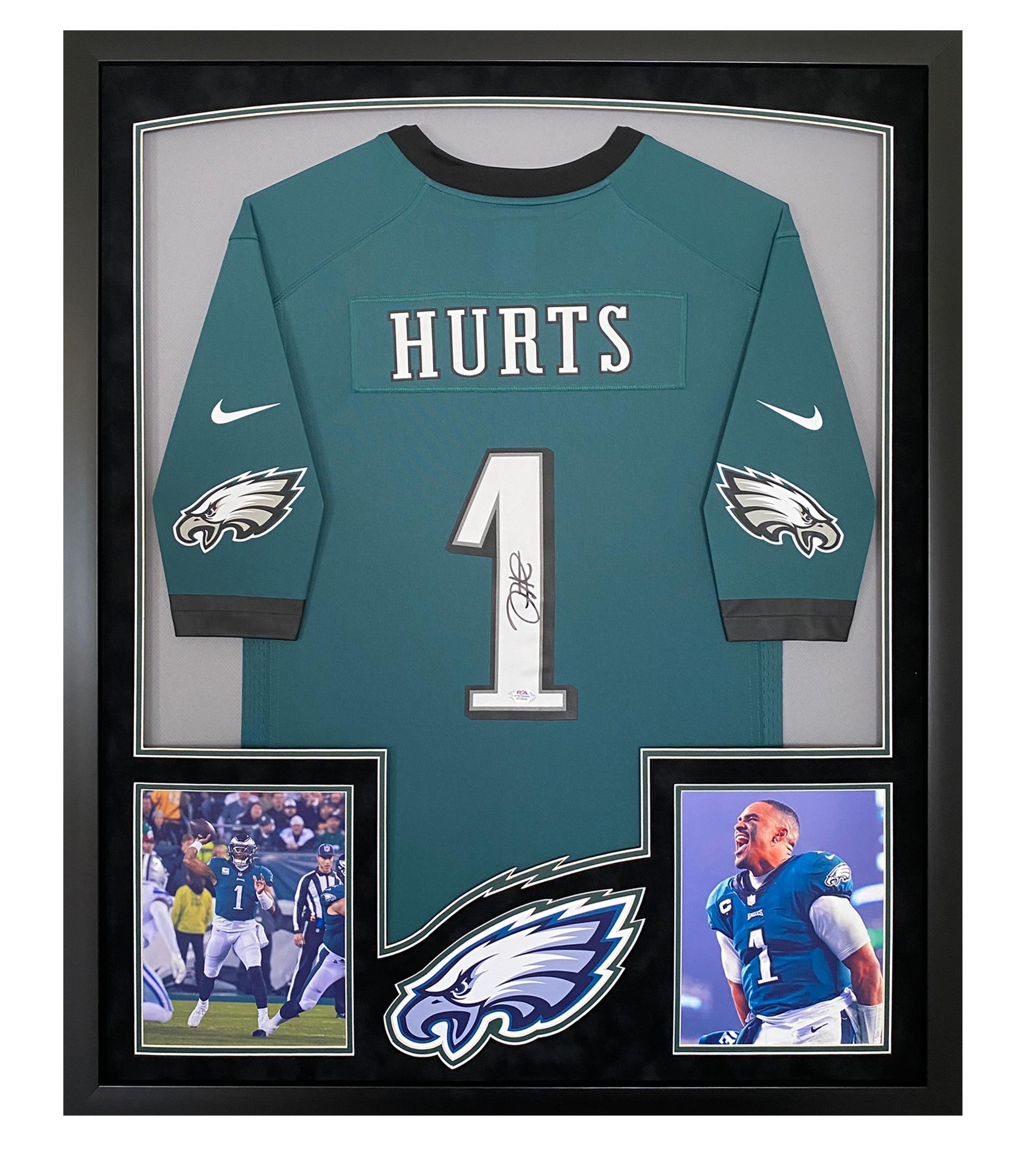 Jalen Hurts Signed Eagles Custom Framed Jersey Display (PSA)