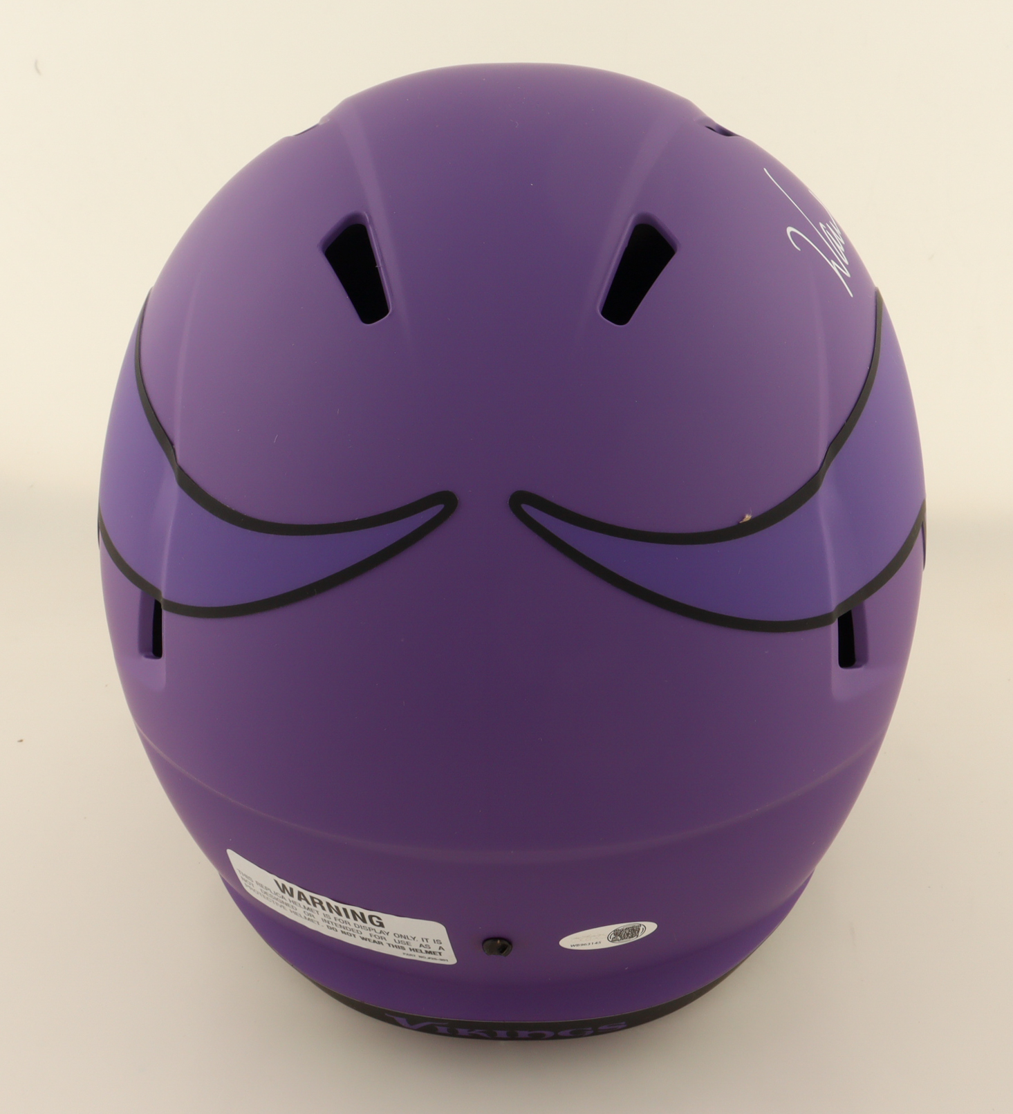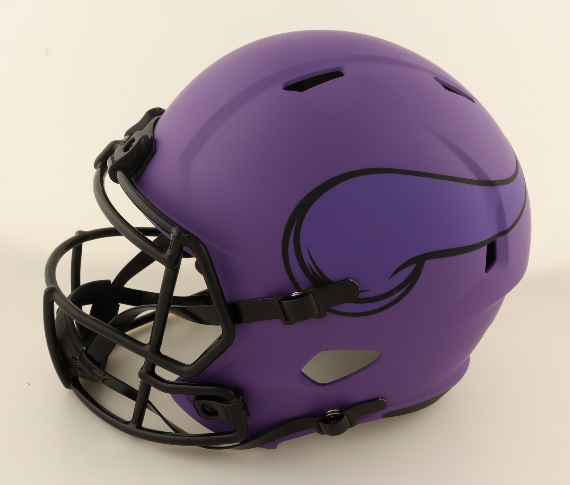 Riddell Minneota Vikings Full-Size Replica Rave Alternate Speed helmet has been hand-signed and inscribed by Warren Moon.