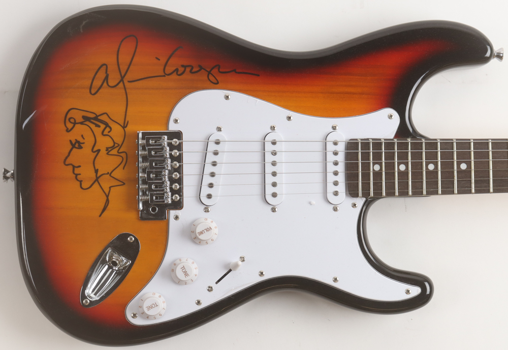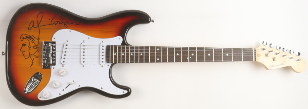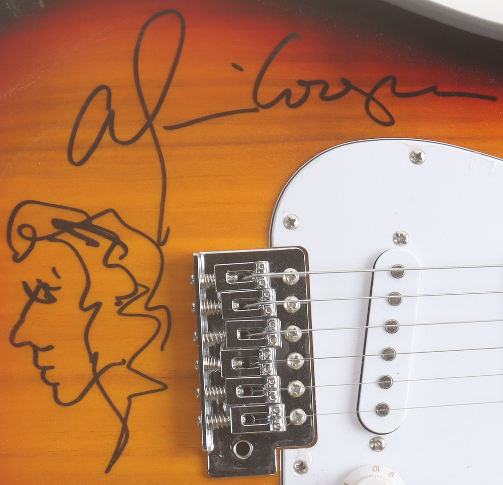 Full-size electric guitar measures approximately 39" in length and has been hand-signed and sketched on the body by Alice Cooper.