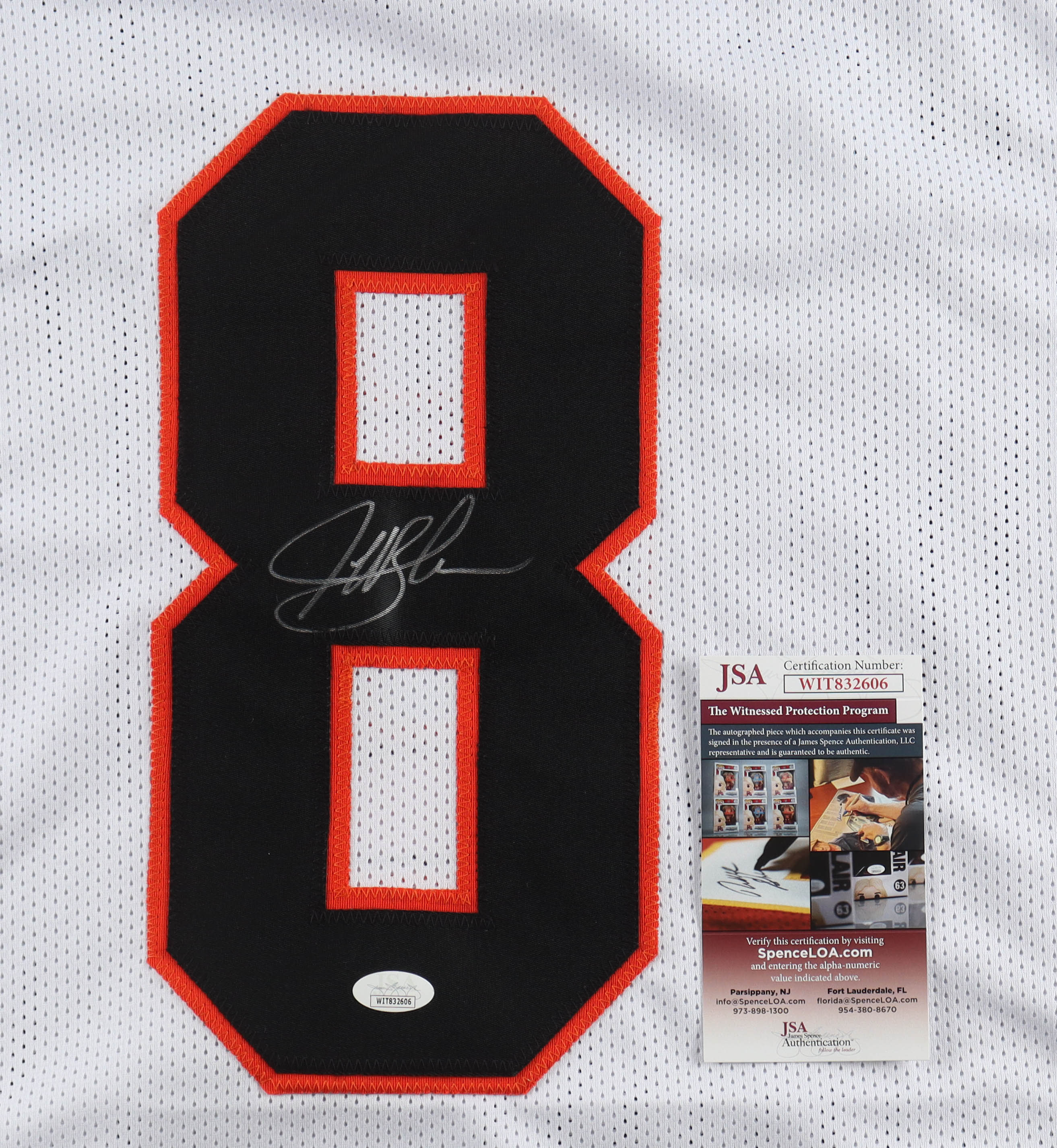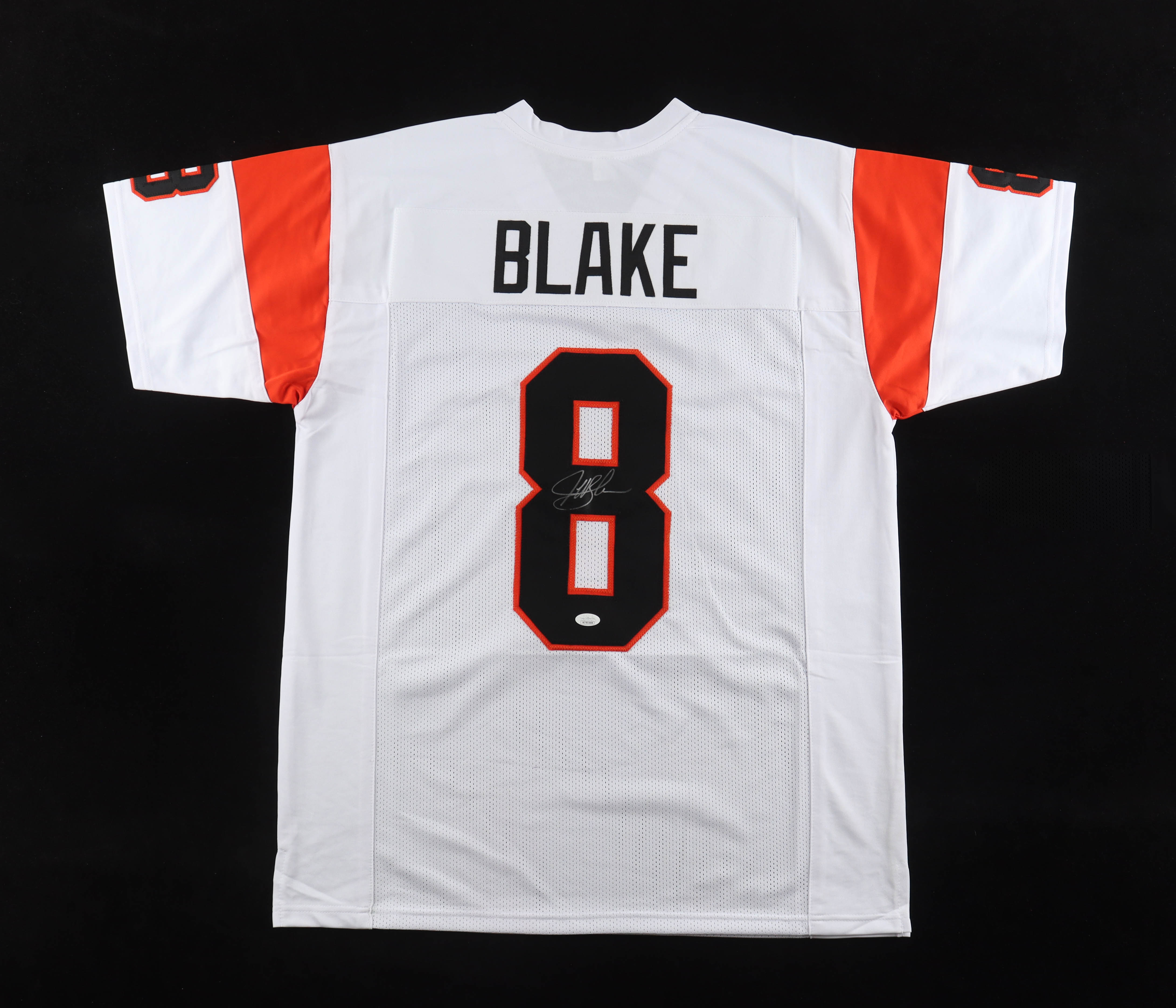 Custom jersey with everything sewn on, size XL. Hand-signed by Jeff Blake.
