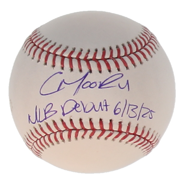 Christian Moore Signed OML Baseball Inscribed "MLB Debut 6/13/25" (PSA)
