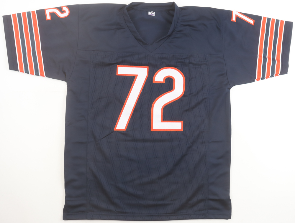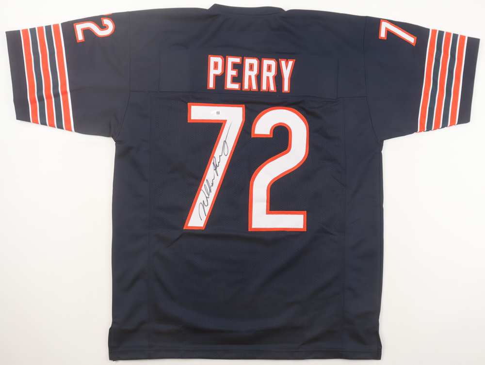 Custom jersey with everything sewn on, size XL. Hand-signed by William Perry.