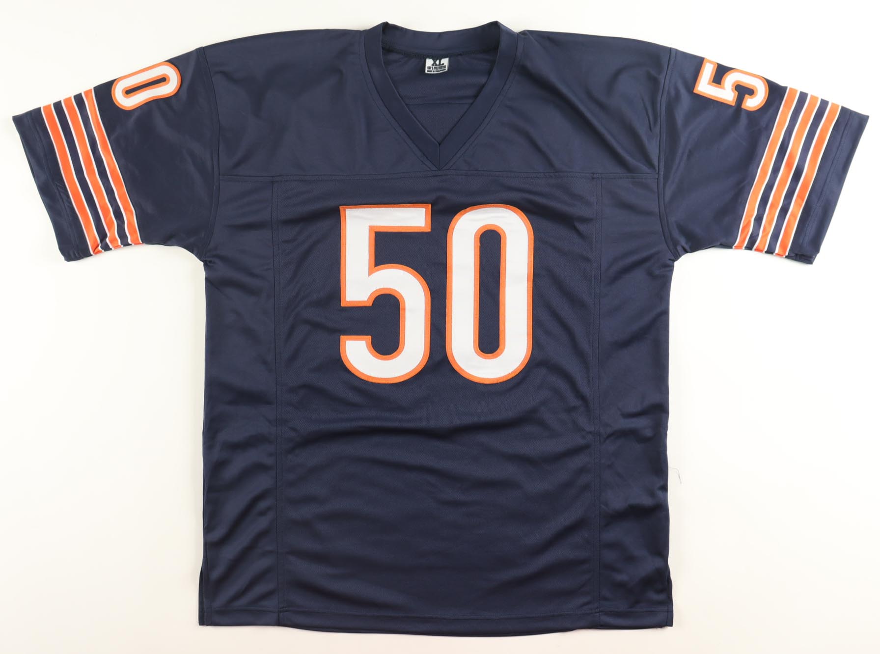 Custom jersey with everything sewn on, size XL. Hand-signed by Mike Singletary (HOF). Singletary's career stats have been custom stitched in the jersey below the reverse numbers