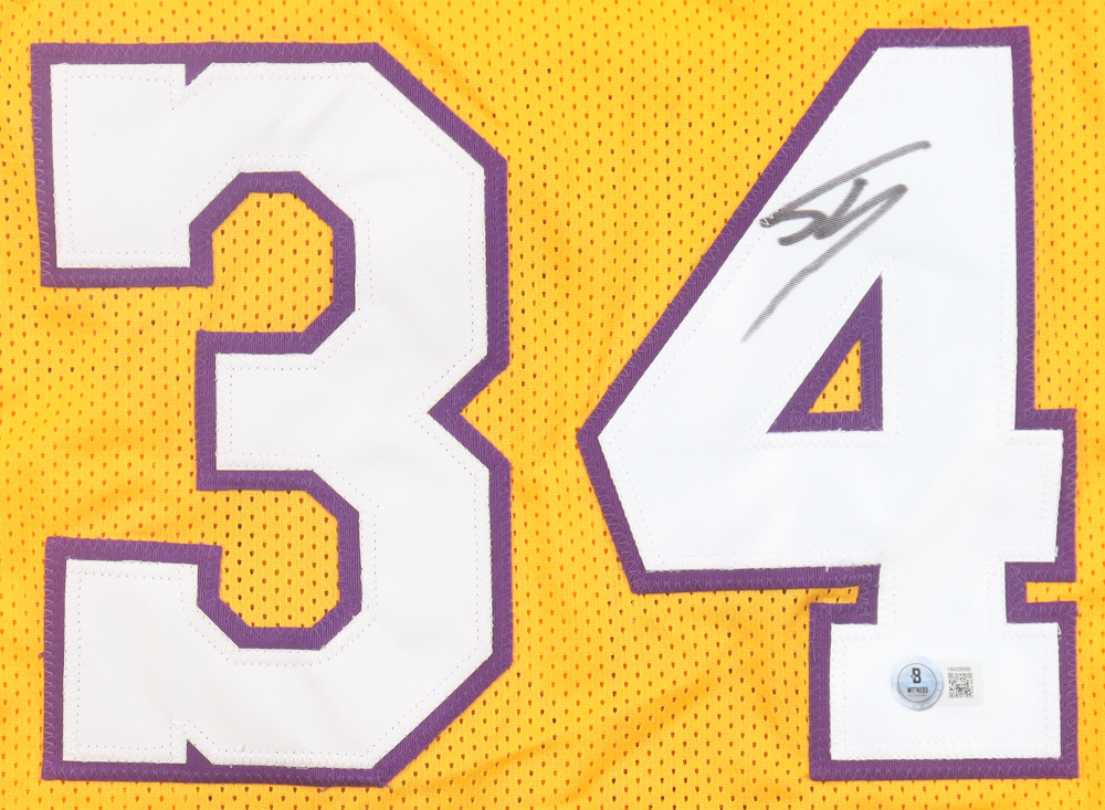 Custom jersey with everything sewn on, size XL. Hand-signed by Shaquille O'Neal (HOF).