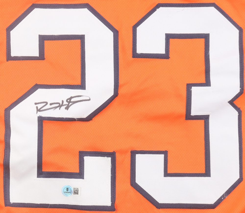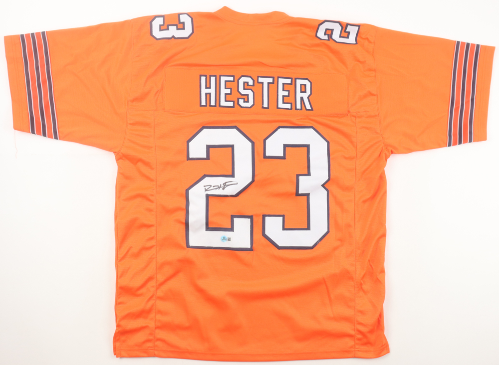 Custom jersey with everything sewn on, size XL. Hand-signed by Devin Hester (HOF).