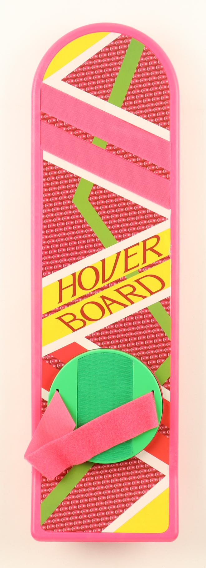 Full-size movie prop replica hoverboard. Hand-signed by Michael J. Fox (Marty McFly) and Christopher Lloyd (Doc Brown).